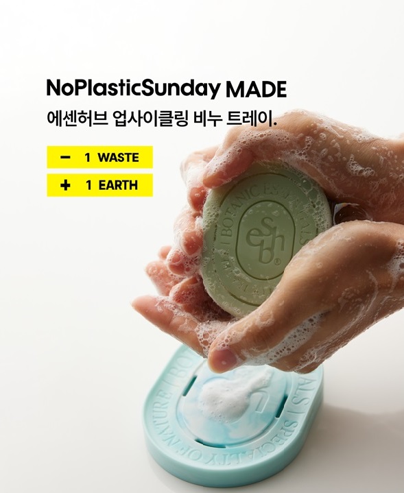 비누 트레이는 업사이클링 전문업체 ‘노플라스틱 선데이’에서 재활용 플라스틱으로 제작하였으며 ‘티트리 장인’ 에센허브의 티트리 딥 클린바 혹은 솝앤핸드밤 세트 구매 시 꼭 맞는 비누 트레이를 증정한다.
