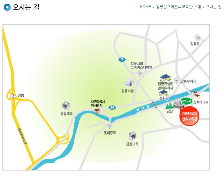 강릉단오제전수교육관 작성자운영 백배|작성시간18.02.13|조회수31 목록 댓글 0 글자크기 작게가 글자크기 크게가 강원도 강릉시 단오장길 1 (노암동) T.033-660-3940~3944http://www.danocenter.kr/sub01/sub01_05.php강릉단오제전수교육관http://dmaps.kr/8z4z7다음 로드뷰 다음검색 현재 게시글 추가 기능 열기 북마크 공유하기 신고 센터로 신고 댓글 댓글 0 댓글쓰기 답글쓰기 댓글 리스트