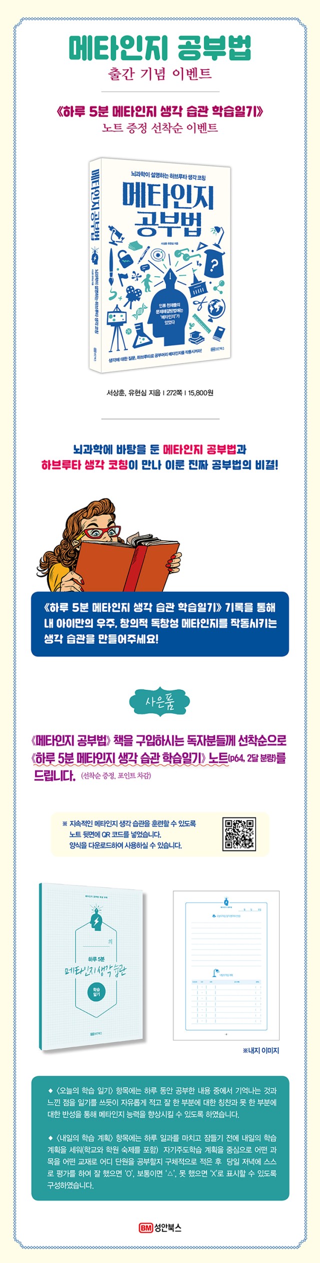 <메타인지 공부법> 출간 기념 이벤트 - <하루 5분 메타인지 생각습관 학습일기> 노트 선착순 증정(양식 PDF 파일 다운로드 받기)