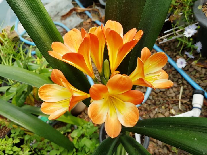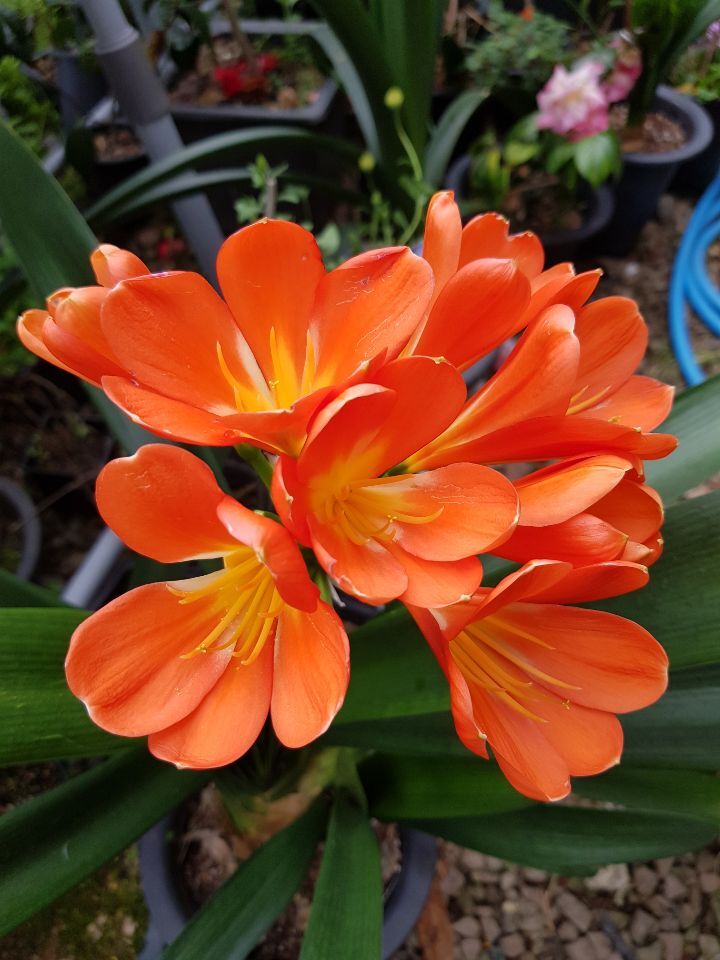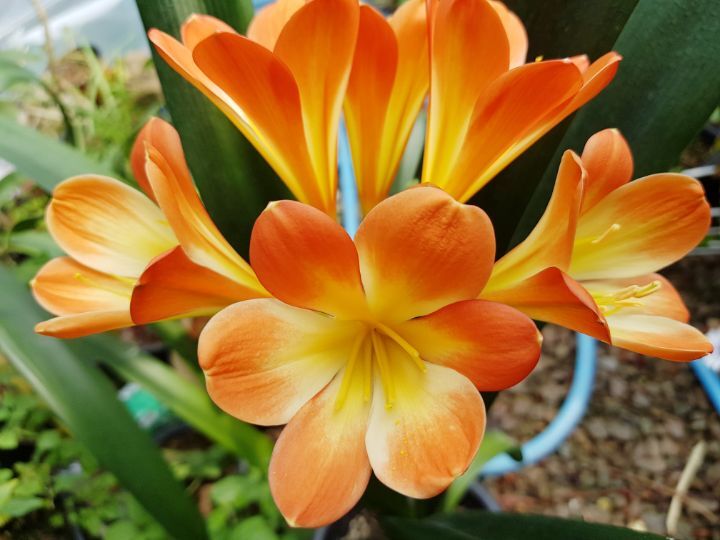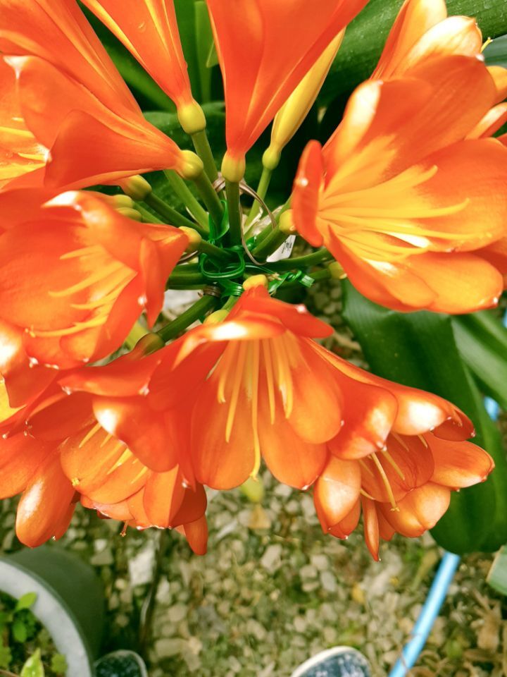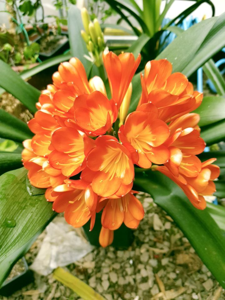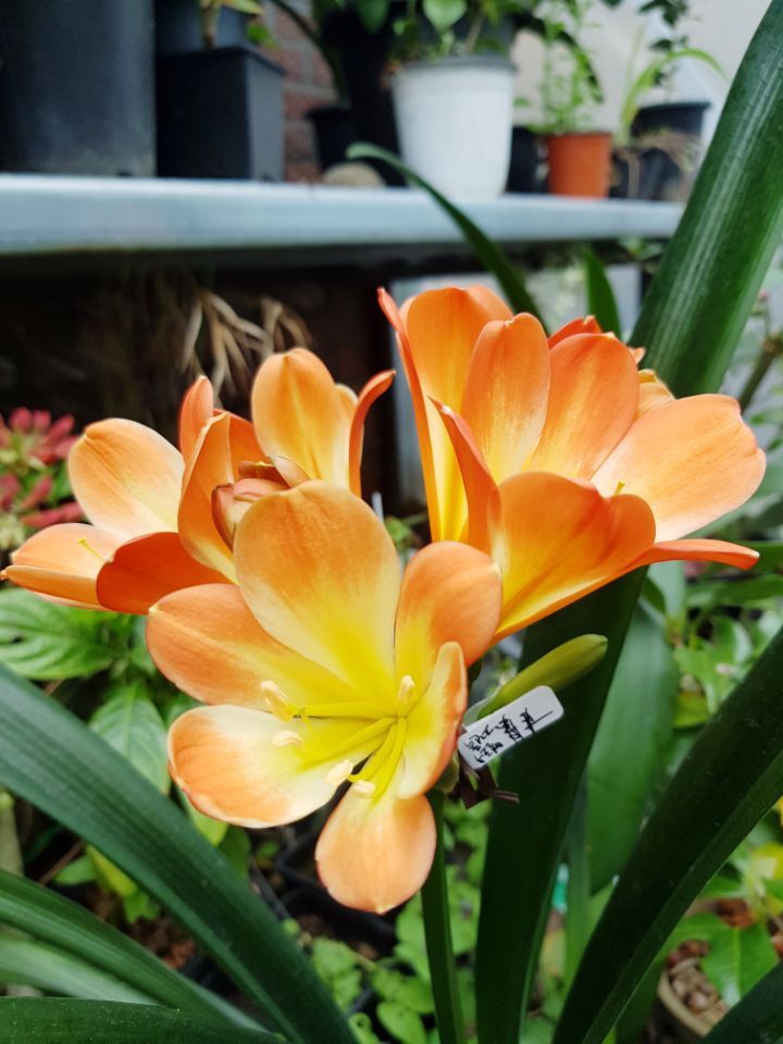 달마 +히라오 에서 나온 오렌지색상 꽃을 자가수정한 씨앗을 발아 8년차에 여러 화분이 각자 조금씩 다른 화색으로 피고 있는데 요 아인 그중 하나에요