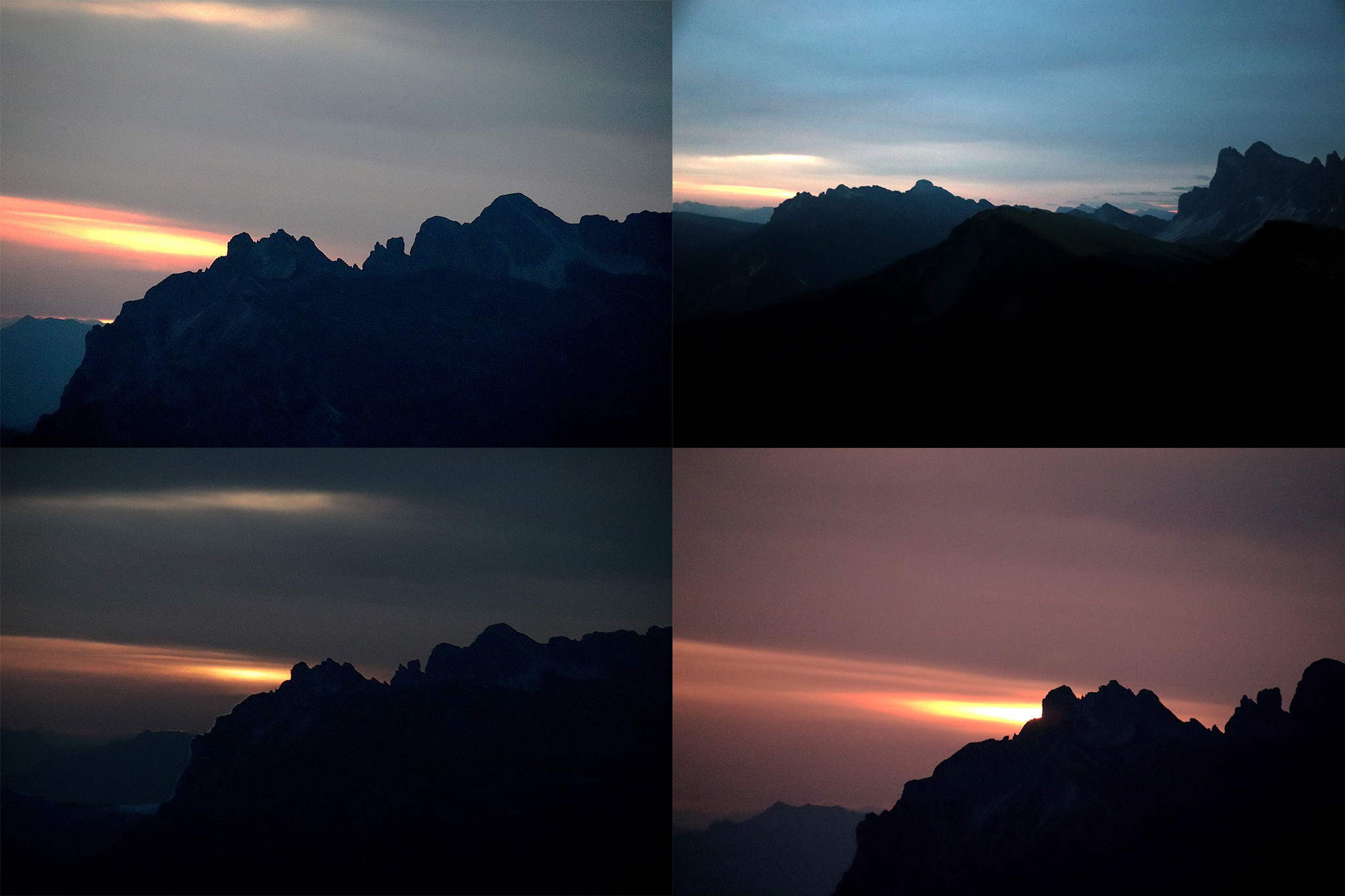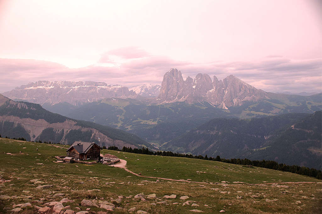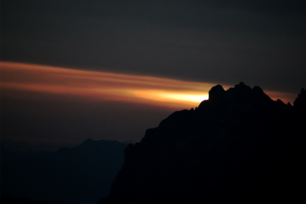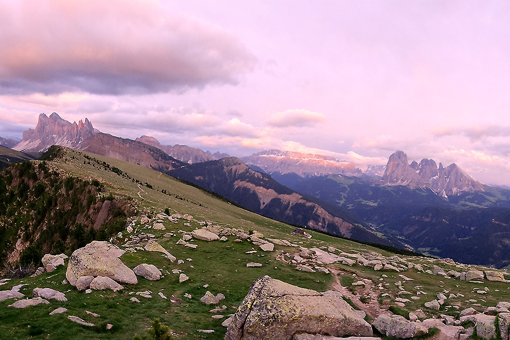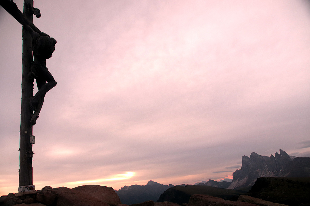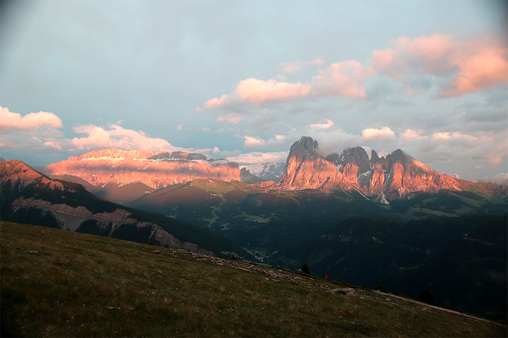 다음날 아침 일찍 일출을 보기 위하여 산장에서 나와 십자가 언덕으로 올라가서 보니 세체다 앞쪽에 붉은 기운이 퍼져 있는 것을 볼 수 있어 해가 그쪽에서 떠 오를 것 같았다. 시간이 조금 흘러간 후 세체다 앞쪽 바위에서 마치 서치레이타 불빛이 나오는 것 같은 모습을 볼 수 있었다. 해뜨기 전 이런 광경을 보기는 처음이었으며, 너무나 신기하였다. 어제 세체다 트레킹을 하면서 제대로 볼 수 없었던 세체다와 오들산군, 푸에스산군, 살라산군, 그리고 사소롱고에 햇빛이 스며드는 아름다운 광경도 볼 수 있었다. 십자가 언덕에서 약 50분 정도 해뜨기 전의 아름다운 모습을 본 후 숙소로 돌아왔으며, 숙소에서 에델바이스를 볼 수 있었다. 이번 산장에서의 하루는 일몰과 일출의 여명을 볼 수 있었던 추억의 장소로 기억될 것이다..