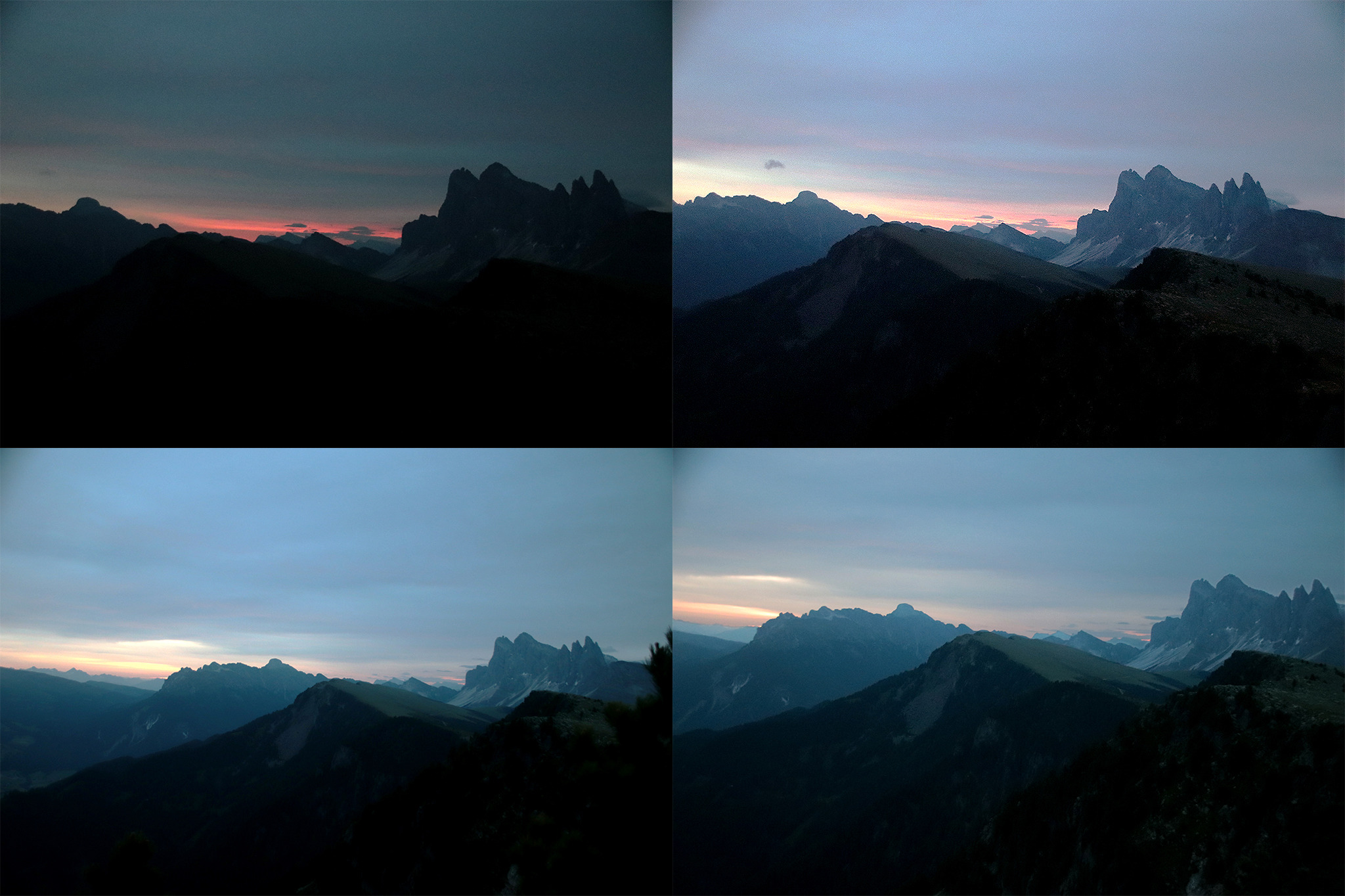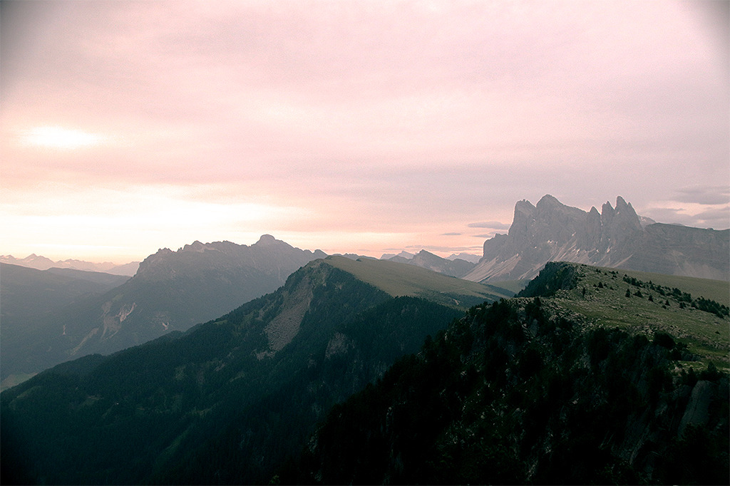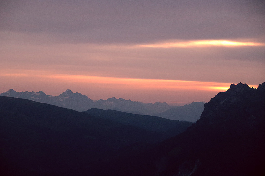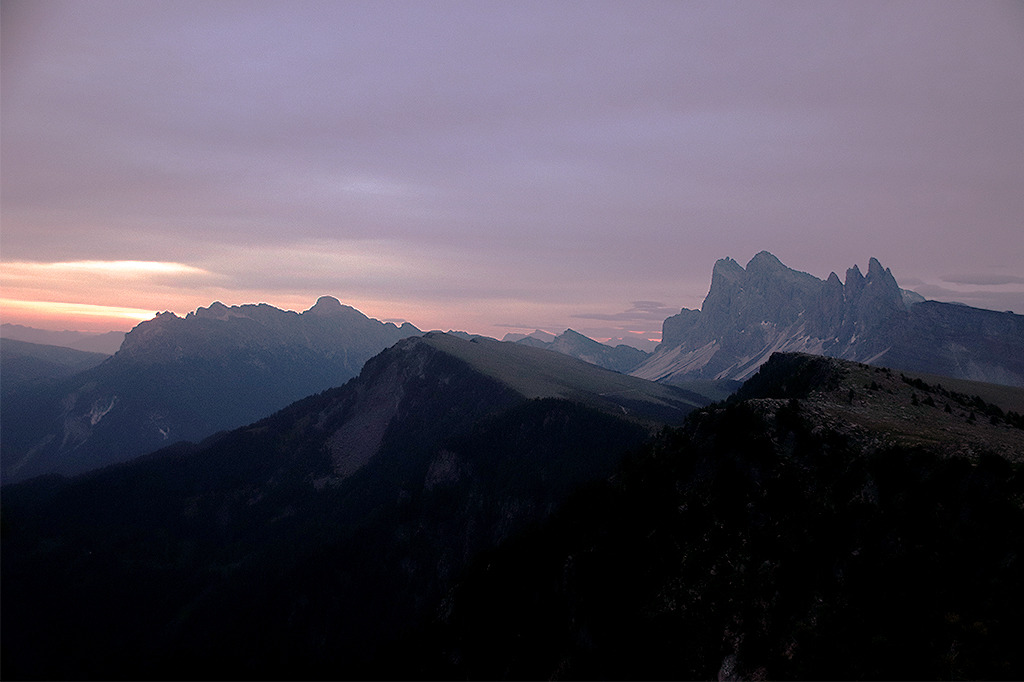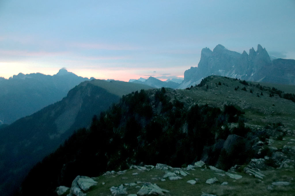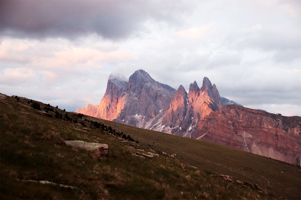 다음날 아침 일찍 일출을 보기 위하여 산장에서 나와 십자가 언덕으로 올라가서 보니 세체다 앞쪽에 붉은 기운이 퍼져 있는 것을 볼 수 있어 해가 그쪽에서 떠 오를 것 같았다. 시간이 조금 흘러간 후 세체다 앞쪽 바위에서 마치 서치레이타 불빛이 나오는 것 같은 모습을 볼 수 있었다. 해뜨기 전 이런 광경을 보기는 처음이었으며, 너무나 신기하였다. 어제 세체다 트레킹을 하면서 제대로 볼 수 없었던 세체다와 오들산군, 푸에스산군, 살라산군, 그리고 사소롱고에 햇빛이 스며드는 아름다운 광경도 볼 수 있었다. 십자가 언덕에서 약 50분 정도 해뜨기 전의 아름다운 모습을 본 후 숙소로 돌아왔으며, 숙소에서 에델바이스를 볼 수 있었다. 이번 산장에서의 하루는 일몰과 일출의 여명을 볼 수 있었던 추억의 장소로 기억될 것이다..