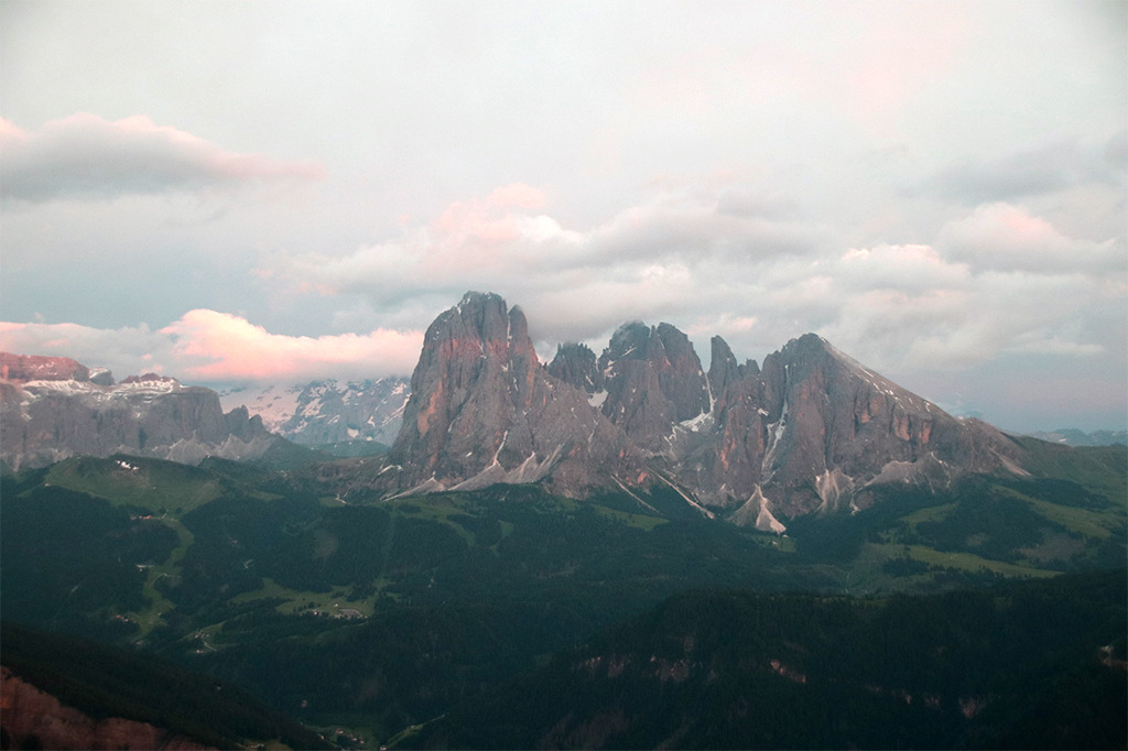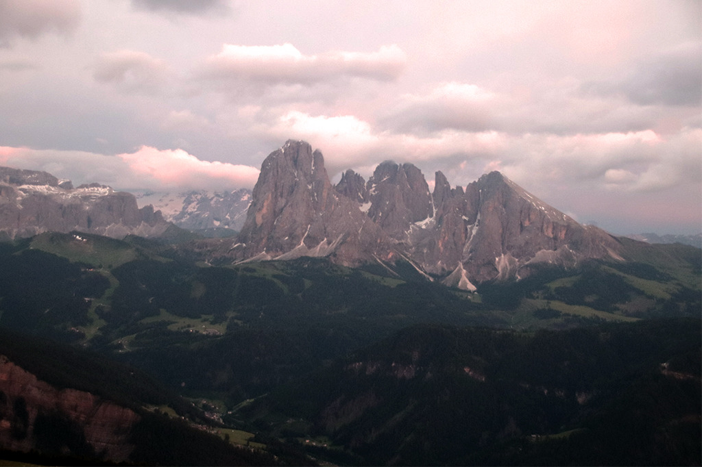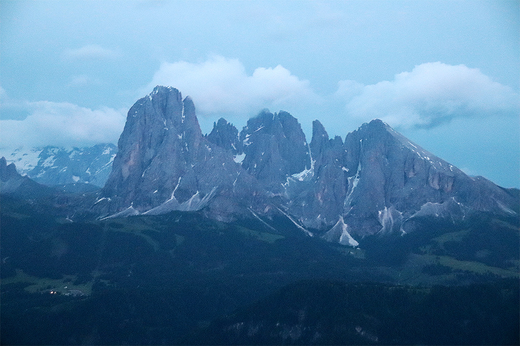 햇빛도 사라지고 5개의 봉우리로 되어 있는 사소롱고가 본래의 모습을 온전히 드러납니다..