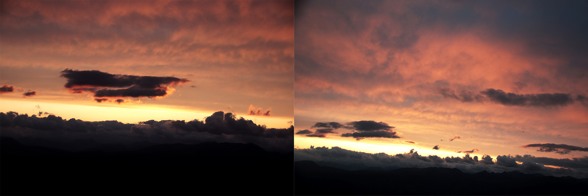 세체다와 푸에스산군, 살라산군, 그리고 사소롱고에 붉은 석양빛 여운이 물들고..