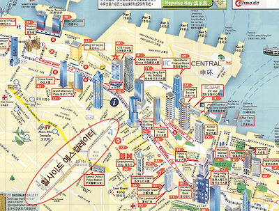 보다시피 센트럴 역을 중심으로 주요 건물들이 동서로 빽빽하게 포진되어 있다.