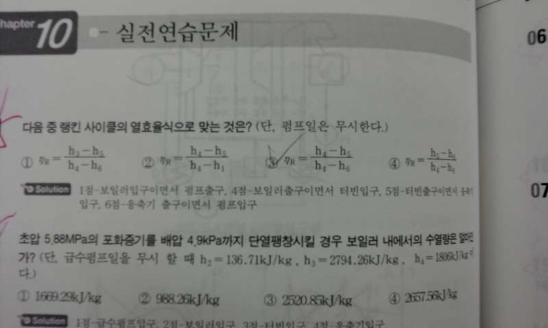 랭킨사이클 열효율식을 묻는 문제가 있습니다.