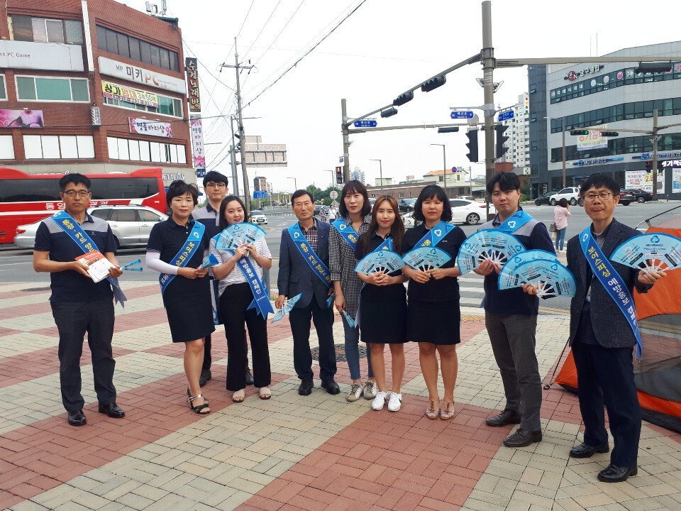 <금고에 근무하던 청원경찰 조동화 13명의 서부금고직원들과 보이스피싱예방 거리홍보에 동참하다.>