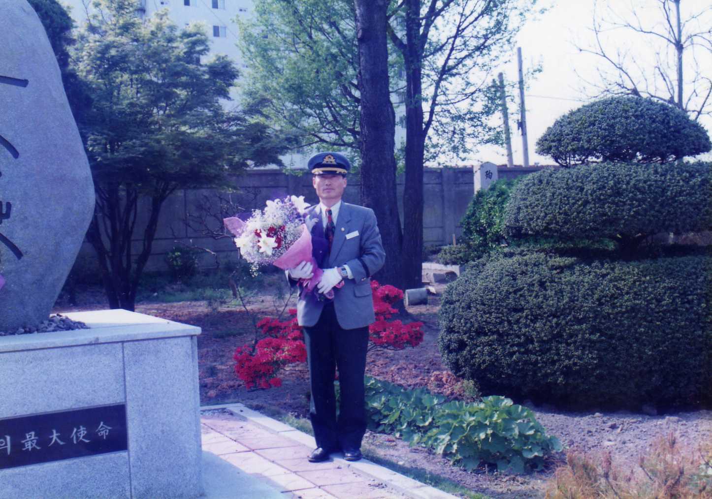 철도에서 근무하다 산화한 선배님들의 순직비에 꽃을 헌화하다.>