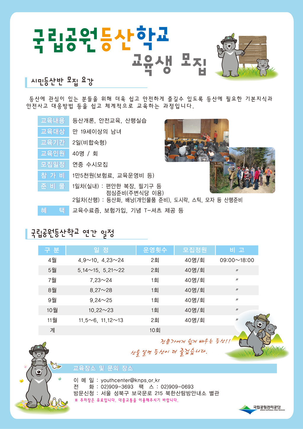 2011년도 국립공원등산학교에 주변 지인들과 참여해 보세요~