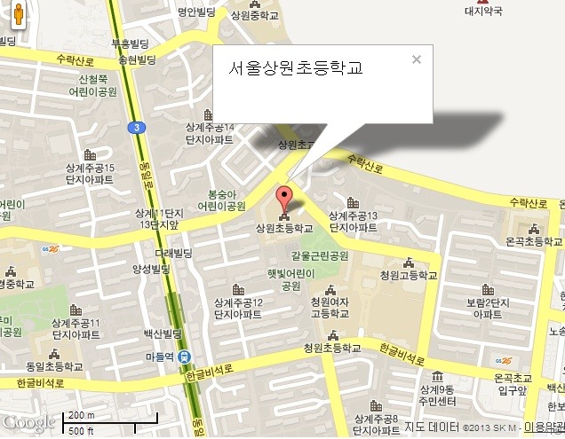 3. 사거리 만두집이 보이면 그 만두집을 끼고 돌면 200미터 앞에 '서울상원초등학교'가 있습니다.