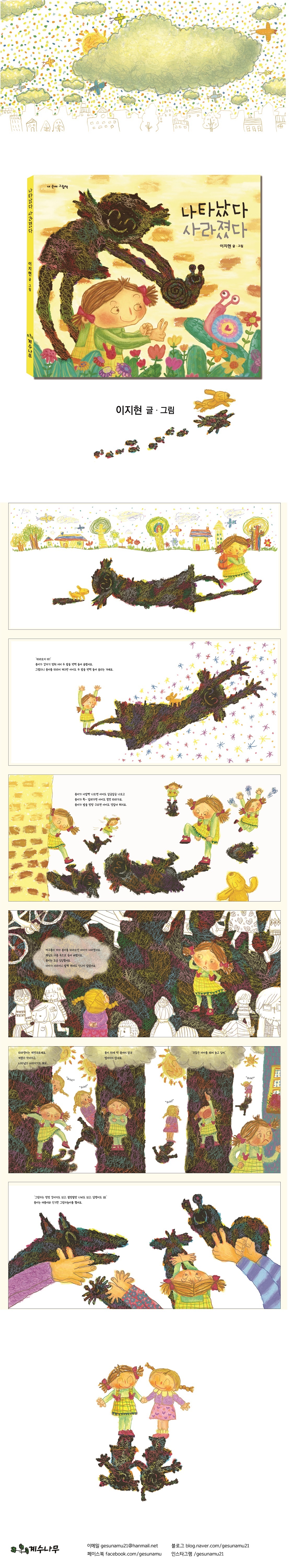 지각 능력이 발달하는 3세 이후 아이들은 두려움을 구체적으로 느낀다고 합니다. 상상력이 풍부해지면서 괴물 같은 상상 속의 대상을 떠올리며 두려워하기도 하고, 공간 능력이 발달해 자신보다 큰 물체를 보고 위압감을 느끼기도 한다는데요. 아이가 처음으로 만나는 자신의 그림자는 아이의 호기심과 두려움을 동시에 자극하는 존재가 됩니다. 그림자를 보고 느끼는 어린아이의 감정을 재미있게 표현한 “나타났다 사라졌다”는 빛이 있으면 어디든 생기는 그림자의 존재를 자연스럽게 인지하도록 도와줍니다.