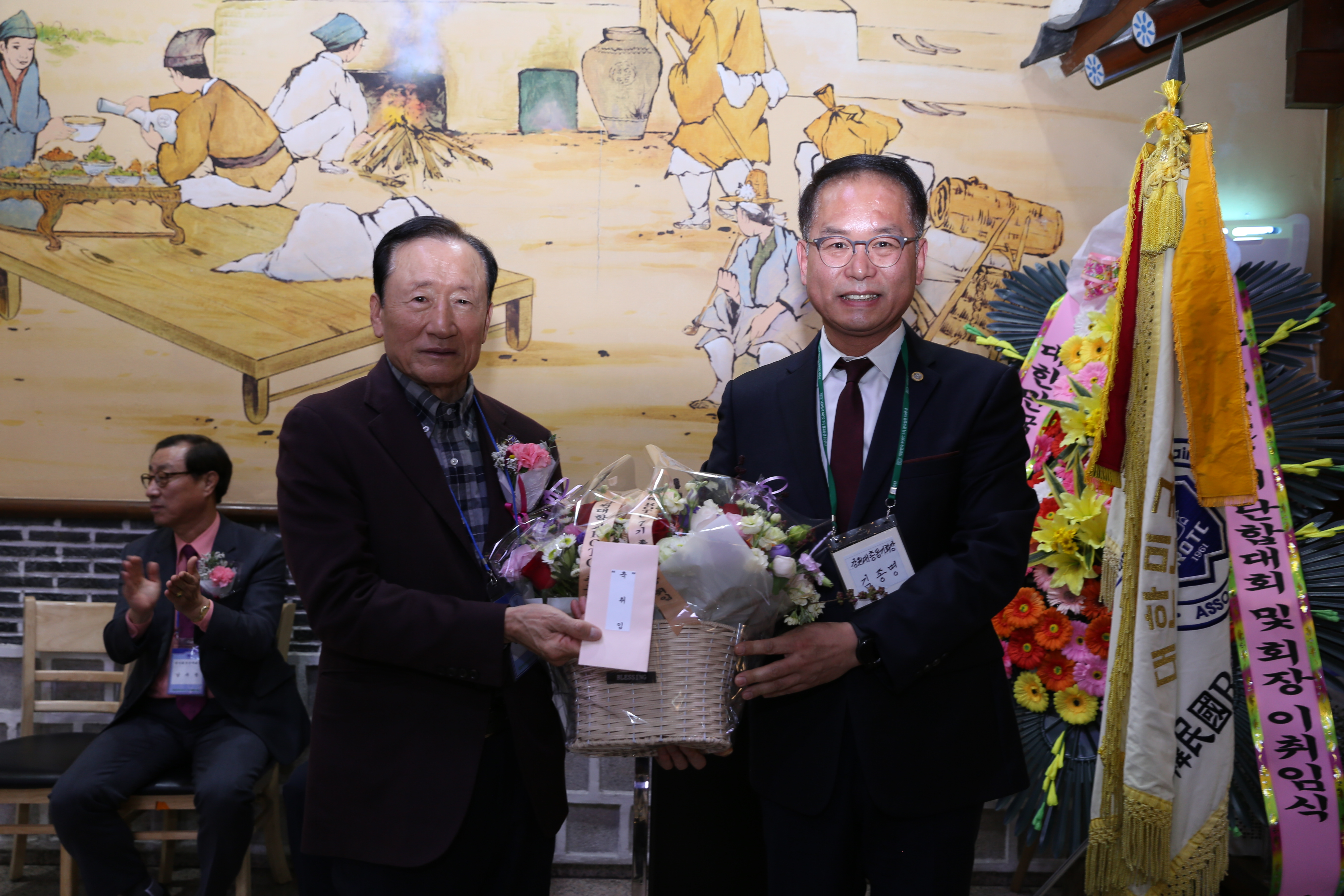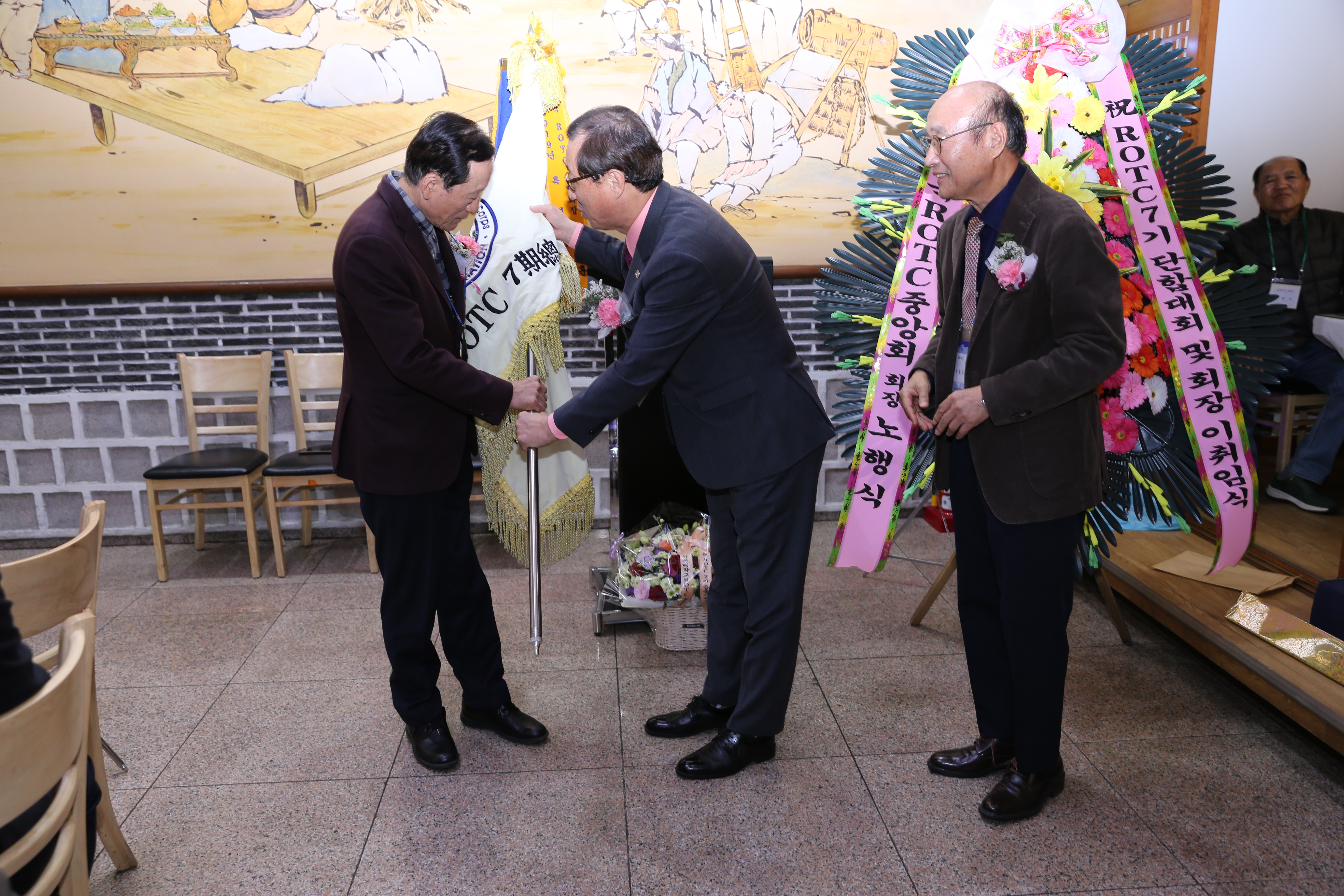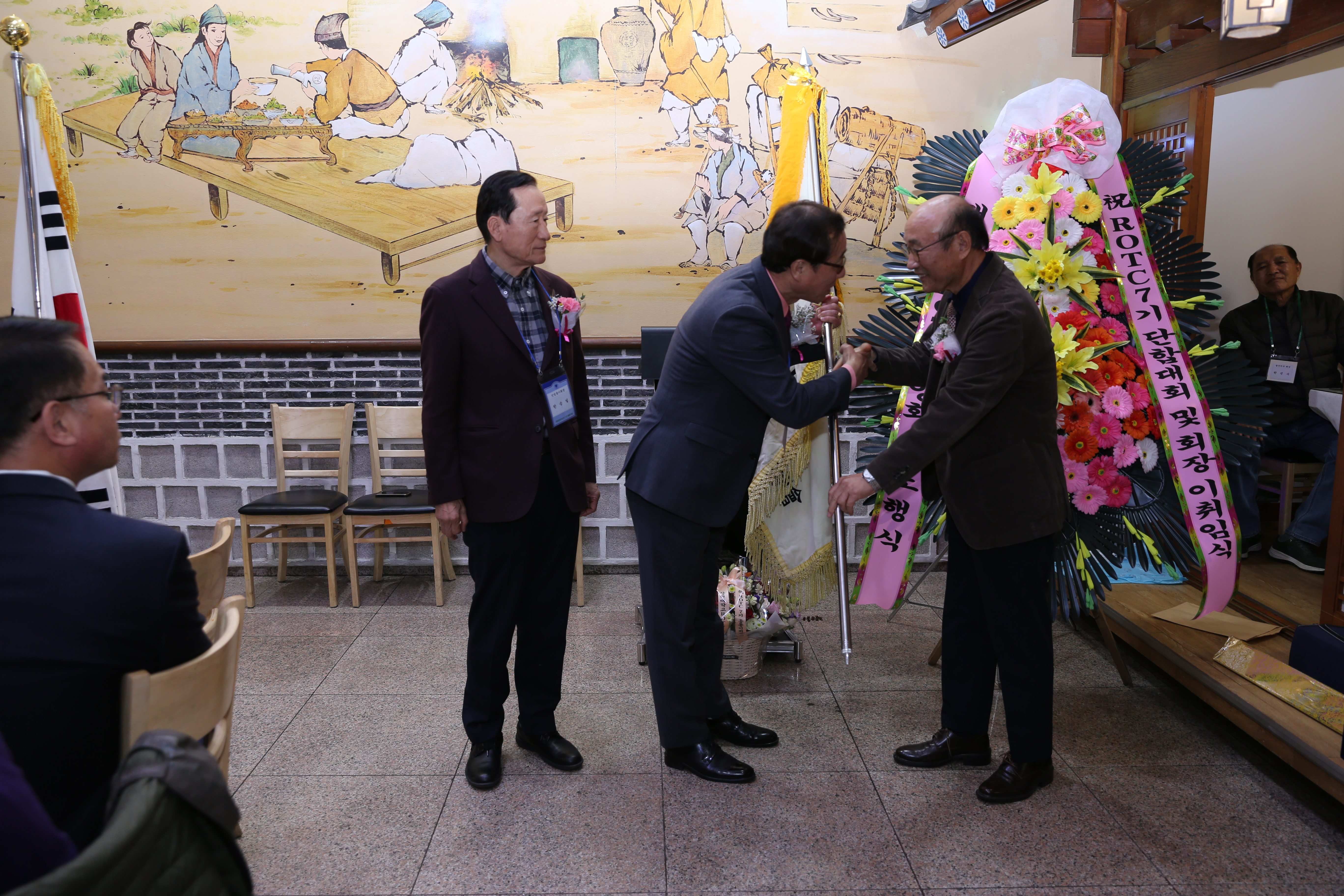 재직기념패와 명패전달이 있었고 동기회기 인수인계 있었다.