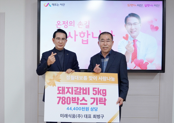 미래식품㈜에서 16일 정월대보름을 맞아 돼지갈비 780박스(4천400만 원 상당, 1박스당 5㎏)를 기탁했다.