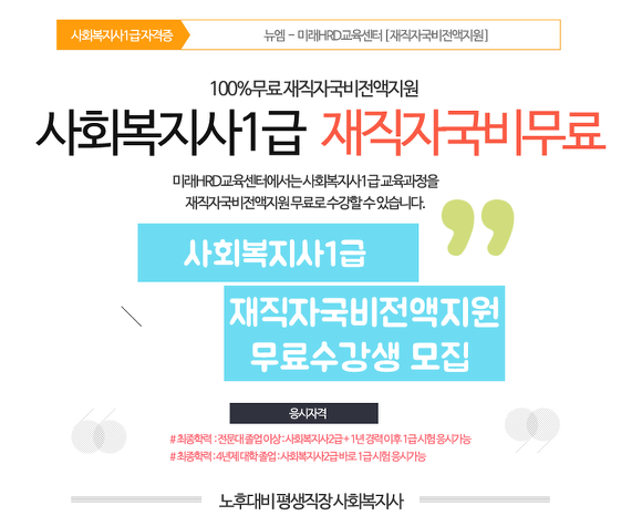 경기 사회복지사1급 자격증 사회복지사1급 재직자 국비지원 교육