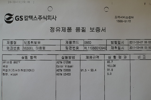 위의 표와 같이 한국의 어느 주유소라도 위의 기준에 적합한 휘발유를 판매하고 있다는 신뢰를 가질수 있는지요?
