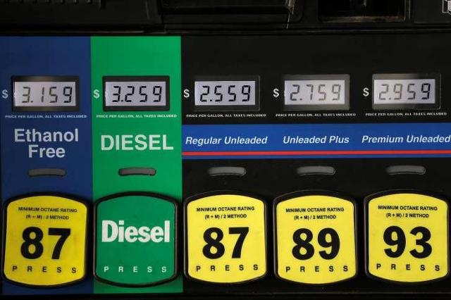 미국 주유소의 주유기에 표시된 휘발유 및 디젤 연료의 종류