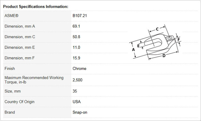 제품명 | Wrench, Crowfoot, Metric, Open End, 35 mm, 1/2" Drive |