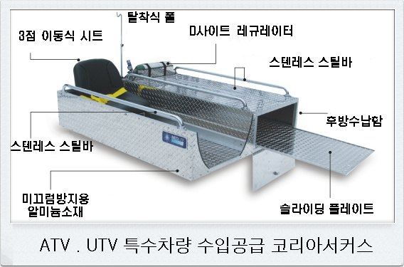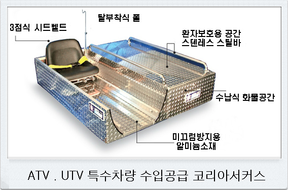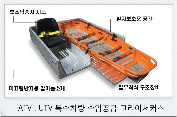 코리아서커스는 KIMTEK Corporation 사에서 생산하는 사이드 유틸리티 차량 (UTV) 에 적재하여 사용하는 구조및 소방활동용 장비를 수입공급 합니다.