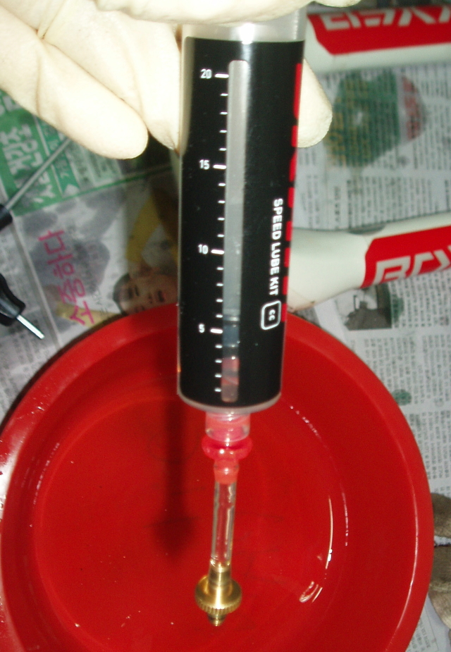 주입한 에어가 밖으로 새지 않도록 합니다. 오버홀 작업 후에는 6cc를 넣지만 현재의 경우 작업한지 얼마 안 되었기에