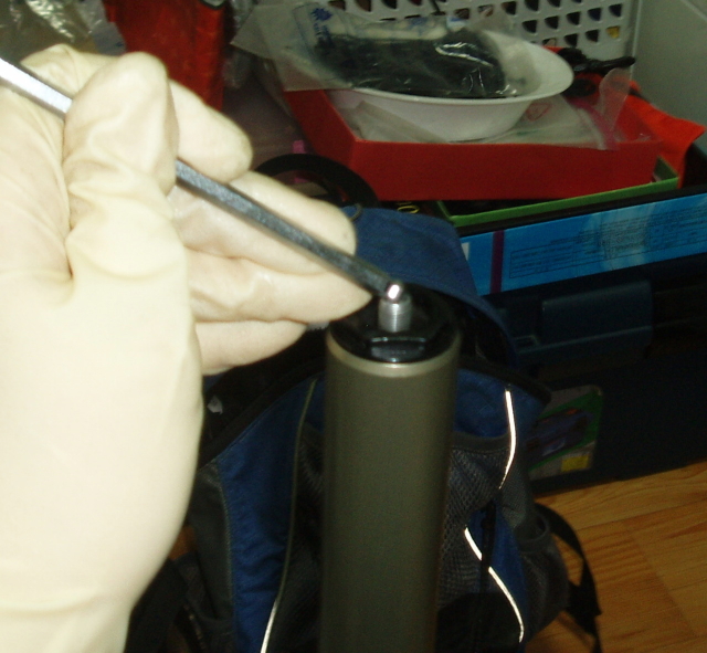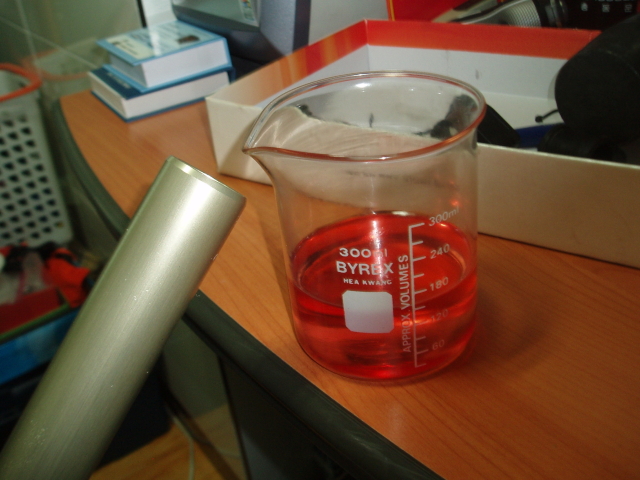 22. 분리된 업퍼 튜브에 디그리셔나 이소프로필 알코올을 부려주시고 21번의 공구를 통하여 업퍼튜브 내부에 남은 댐