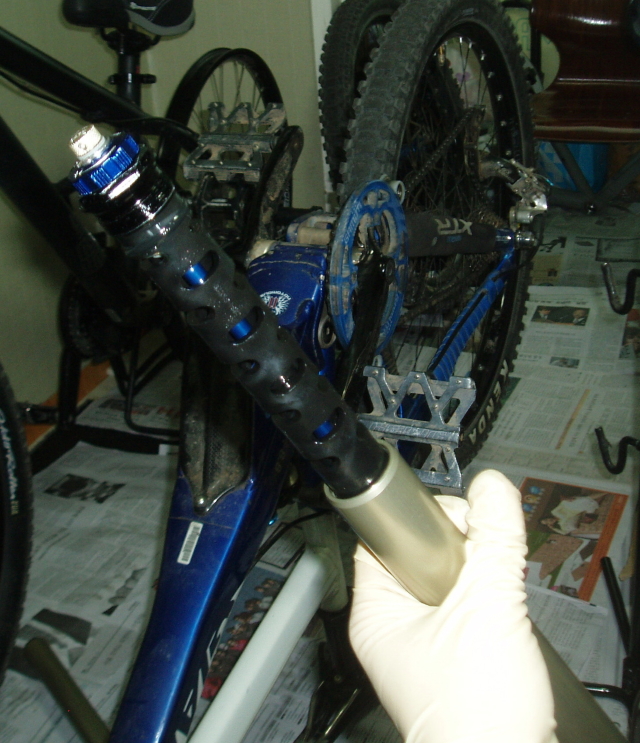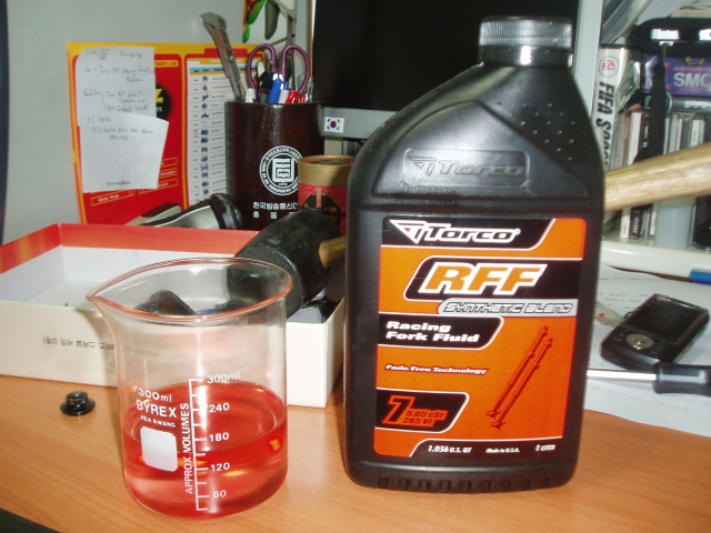 50mm남고 나오지 않는 저질스러운 샥이 되는 것을 확인했기에 Torco사의 오일로 교체했습니다.)