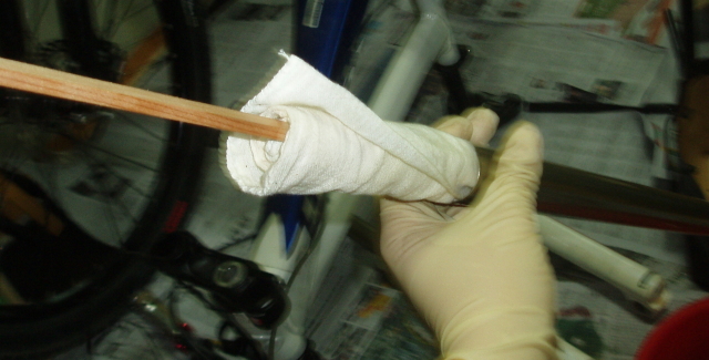 21. 얇은 나무막대에 깨끗한 천을 감아 만든 저의 업퍼튜브 청소장비입니다.