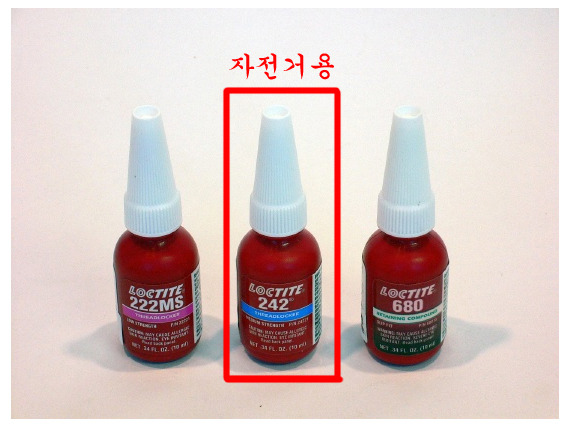 보통 자전거용 볼트를 풀었을 때 나사산에 묻어있는 파란색 페이트 같은 것이 나사고정제이며, 대표적 브랜드가 록타이트(Loctitle)입니다. 인터넷을 잘 살펴보면 국내 생산 브랜드도 있습니다.