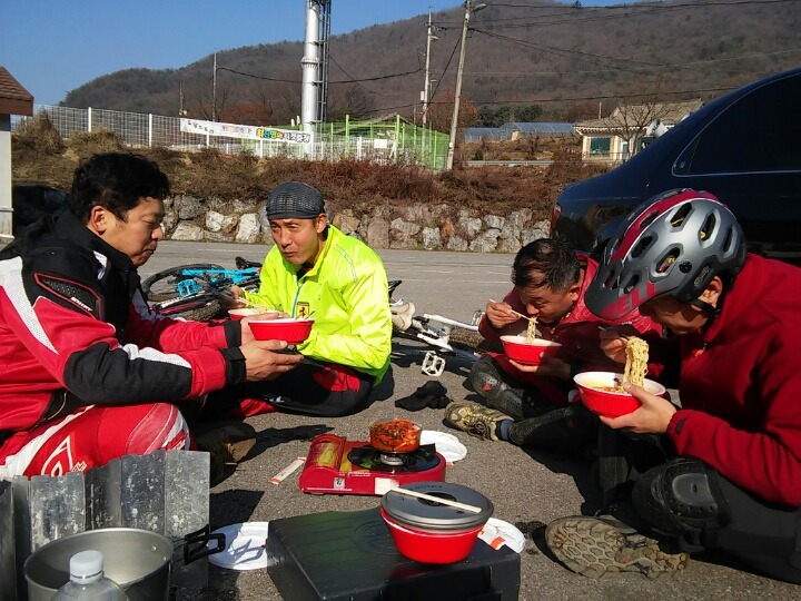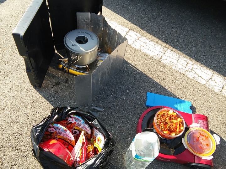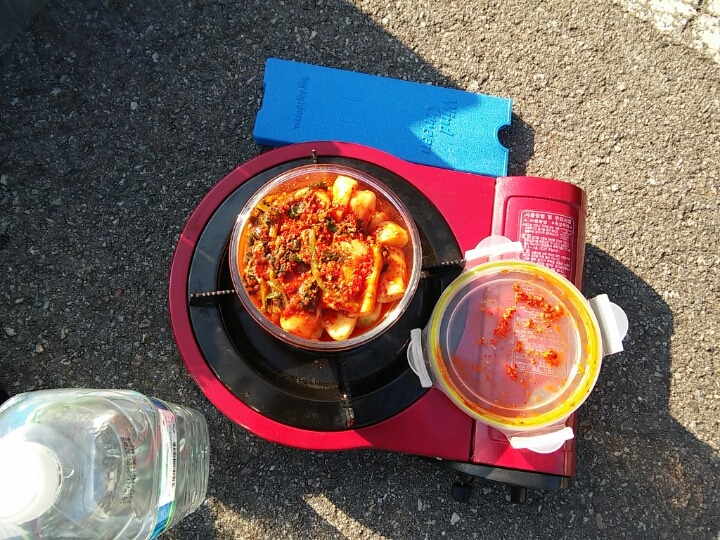 해가 좋아 천막 없어도 김치에 라면이 맛났습니다