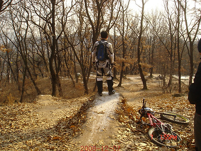 드디어 본 점프대를 한번 시도했으나 브레이크 방향이 xc와 달라서 본능적으로 착지시 앞브레이크를 잡아