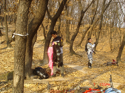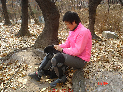 강산님은 언제 준비를 했는지 팔꿈치 와 무릎보호대 그리고 다운힐용 옷까지 갖춰져있었다.