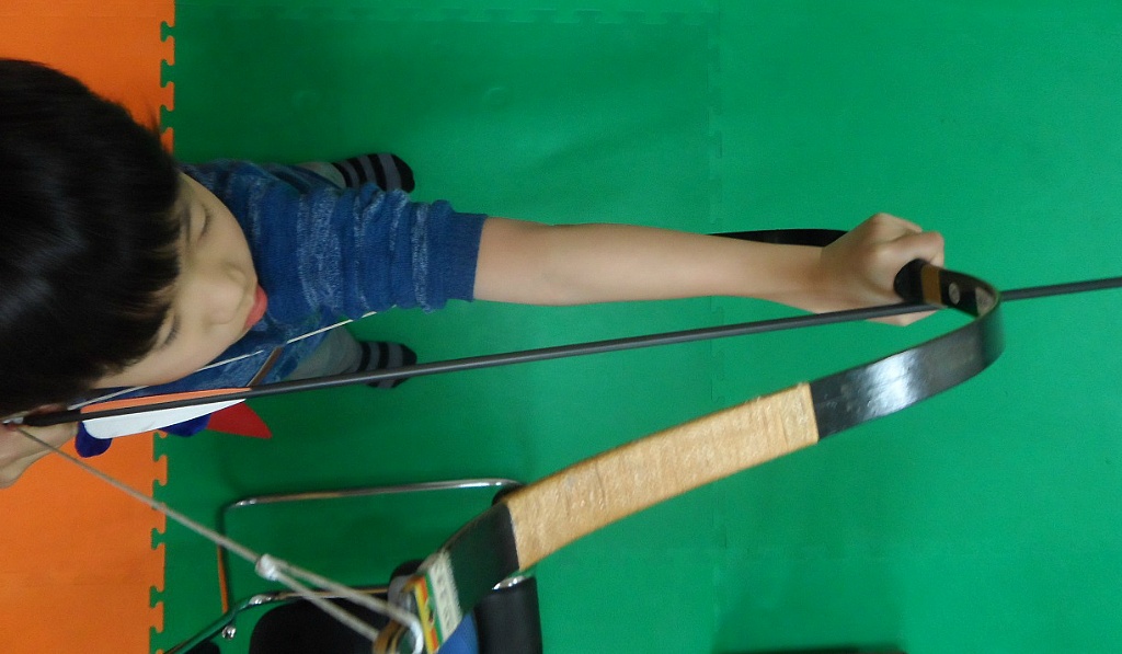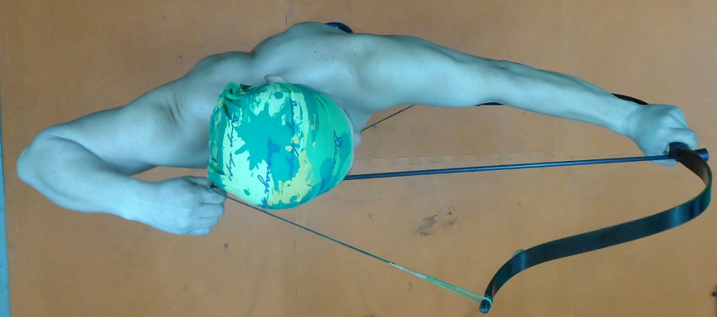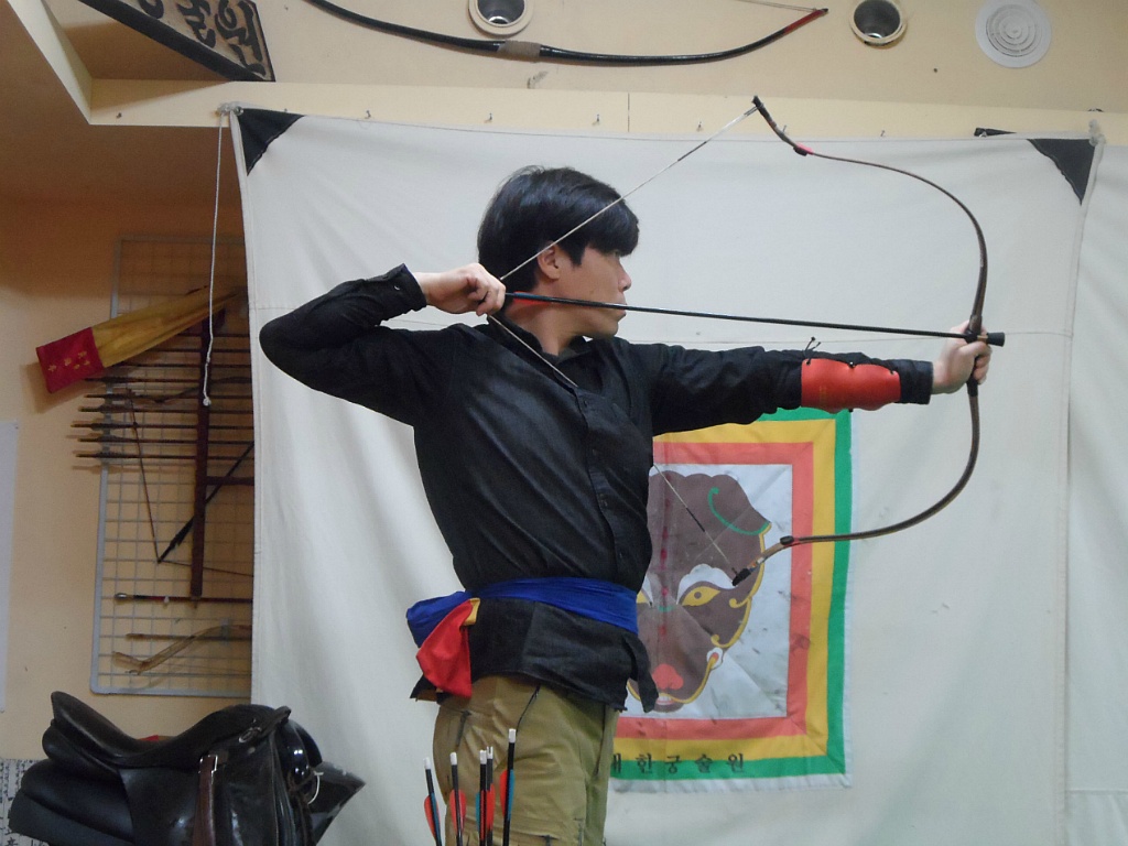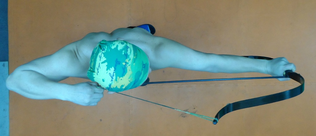 그냥 팔을 쭉 펴고 만작한 모습입니다. 이 친구는 이렇게 쏘면 팔둑을 맞는다고합니다. 저는 이 친구 팔이 붕어 죽같읍니다.