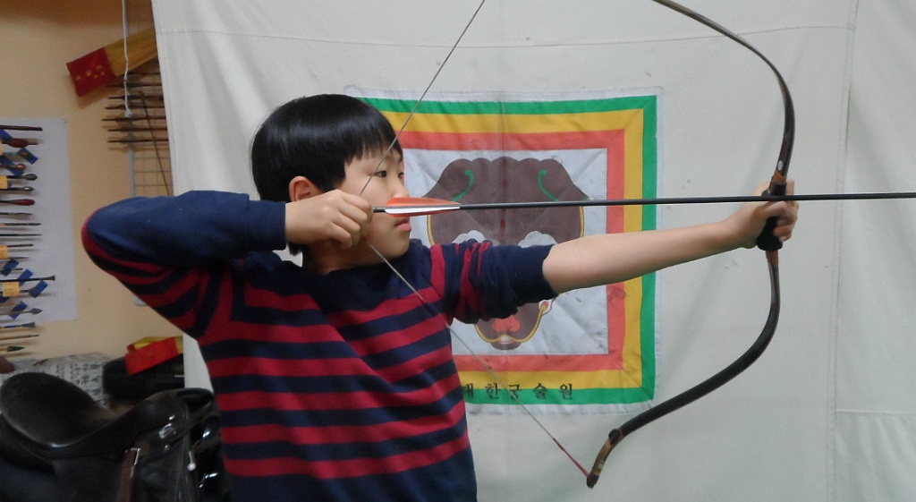 힘쓰고 못쓰고의 차이는 활의 쎄기, 본인의 근력 차이 일뿐이지, 팔을 쭉 폈다,구부렸다가 아니라고 봅니다.^^