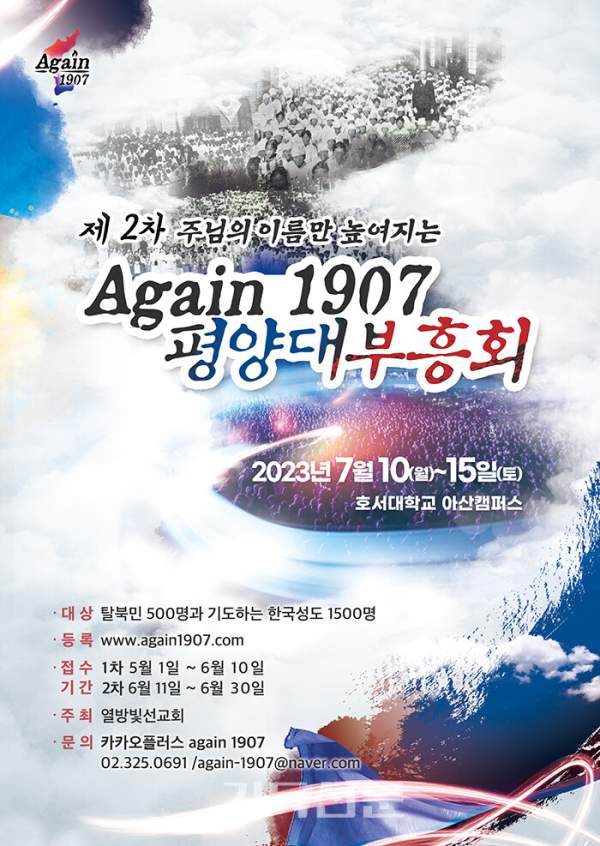 초청 대상은 탈북민 500명과 기도하는 성도 1천500명이다. 참가 신청은 홈페이지(https://again1907.com/Home)에서 하면 된다