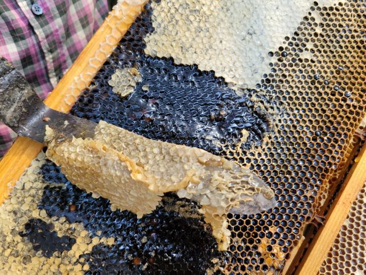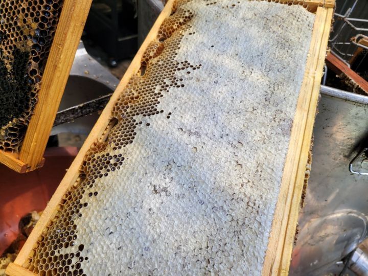 채밀하기전 소방에 밀납을 제거해 주어야만 채밀을 할수 있기에