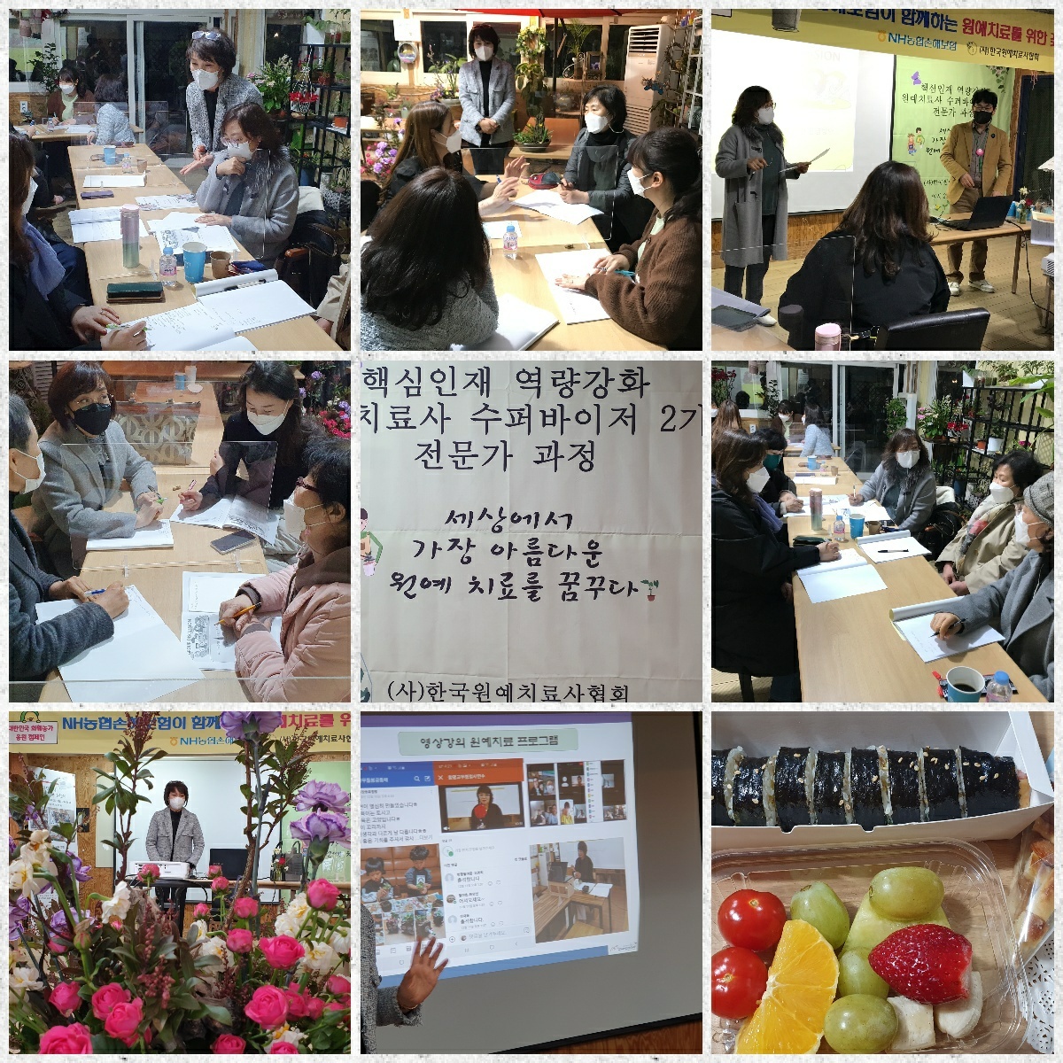 선임 수퍼바이저로 활발한 활동을 해오신 김영미 교육기획단장님과 이보영 광주교대운영국장님의 아낌없는 노하우(Know-how) 전수에 감동받았다. 또한 박정숙 서울지부장님과 김갑순 광주지부장님의 서프라이즈 격려 방문과 꽃과 식물로 품격있는 강의실을 연출해주신 박자영 수석부지부장님, 김도연 국장님을 통해 원예치료사의 따뜻한 마음을 전해 받을 수 있어 행복했다.