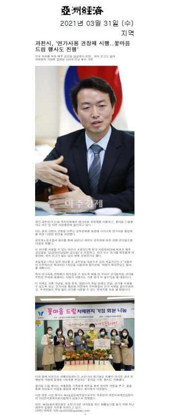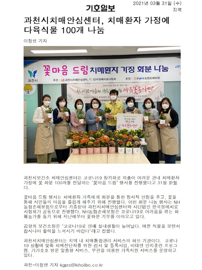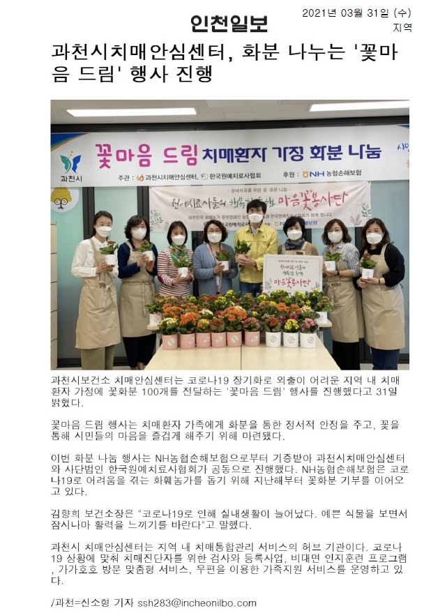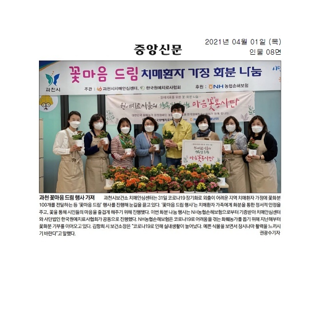 담당 직원분께서 저희 협회 꽃 나눔 행사를 지역 신문에