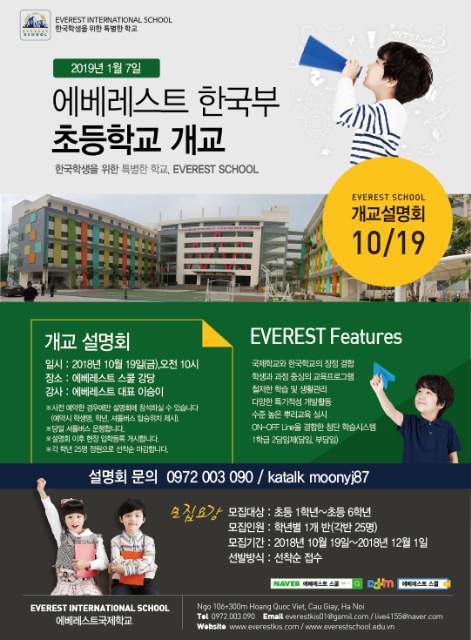 하노이 에베레스트 국제부 초등학교 개교 소식을 알려드립니다.