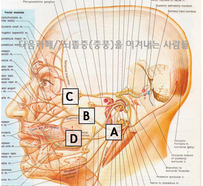 안면마비는 귀 아래의 하나의 신경줄기에서 이마, 눈주위, 코, 입술, 턱 등으로 연결되어 신경자극을 통하여 각각의 근육들이 움직이게 하는 것입니다. 다만 신경손상으로 전달능력이 떨어져 근육들의 움직임이 잘 안되는 것입니다. 이것이 마비랍니다.