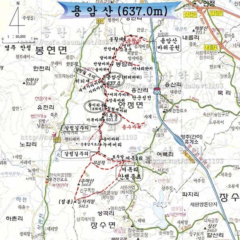 4. 산행지 - 경북 영주시 안정면, 봉현면