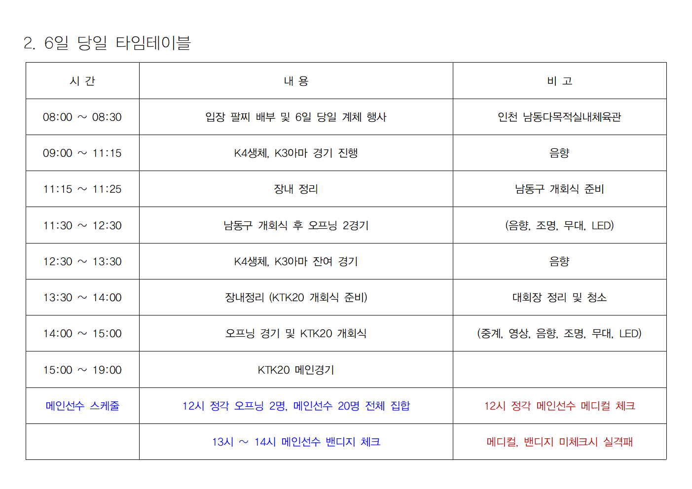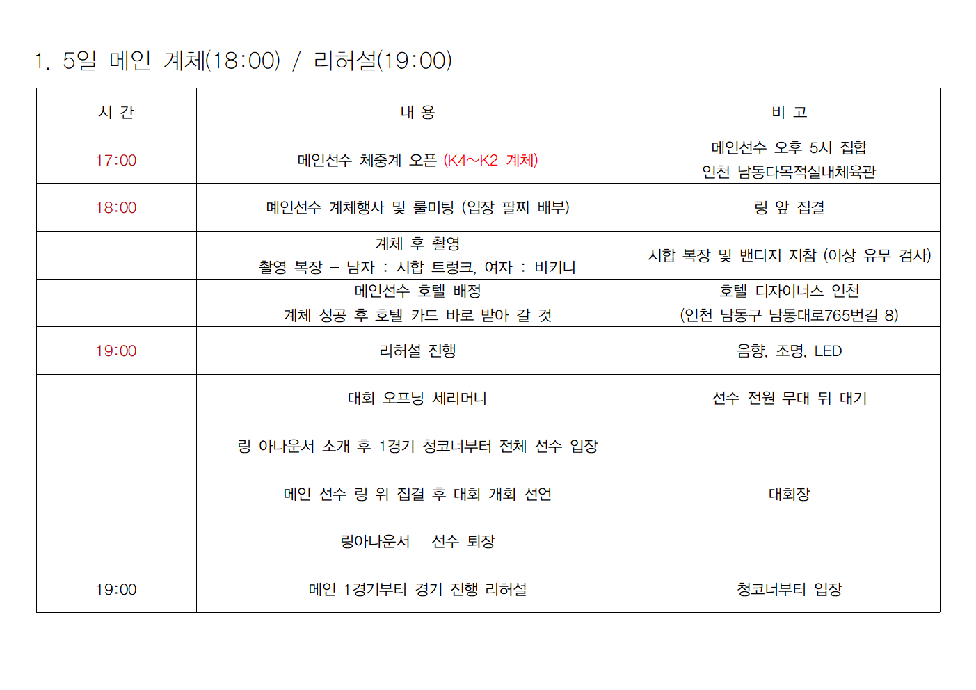 (시간 엄수 / 그외 시간 계체 절대 불가)
