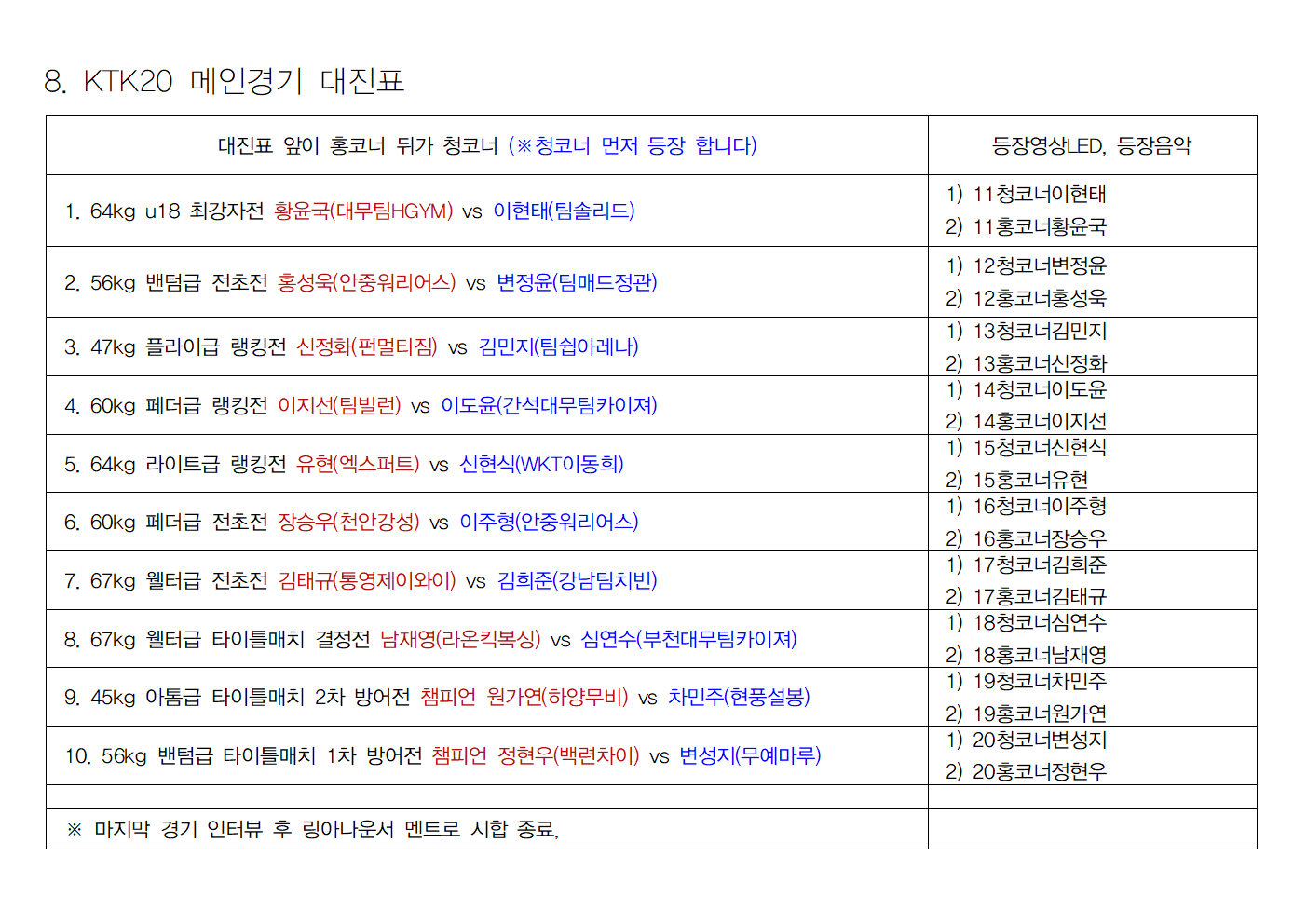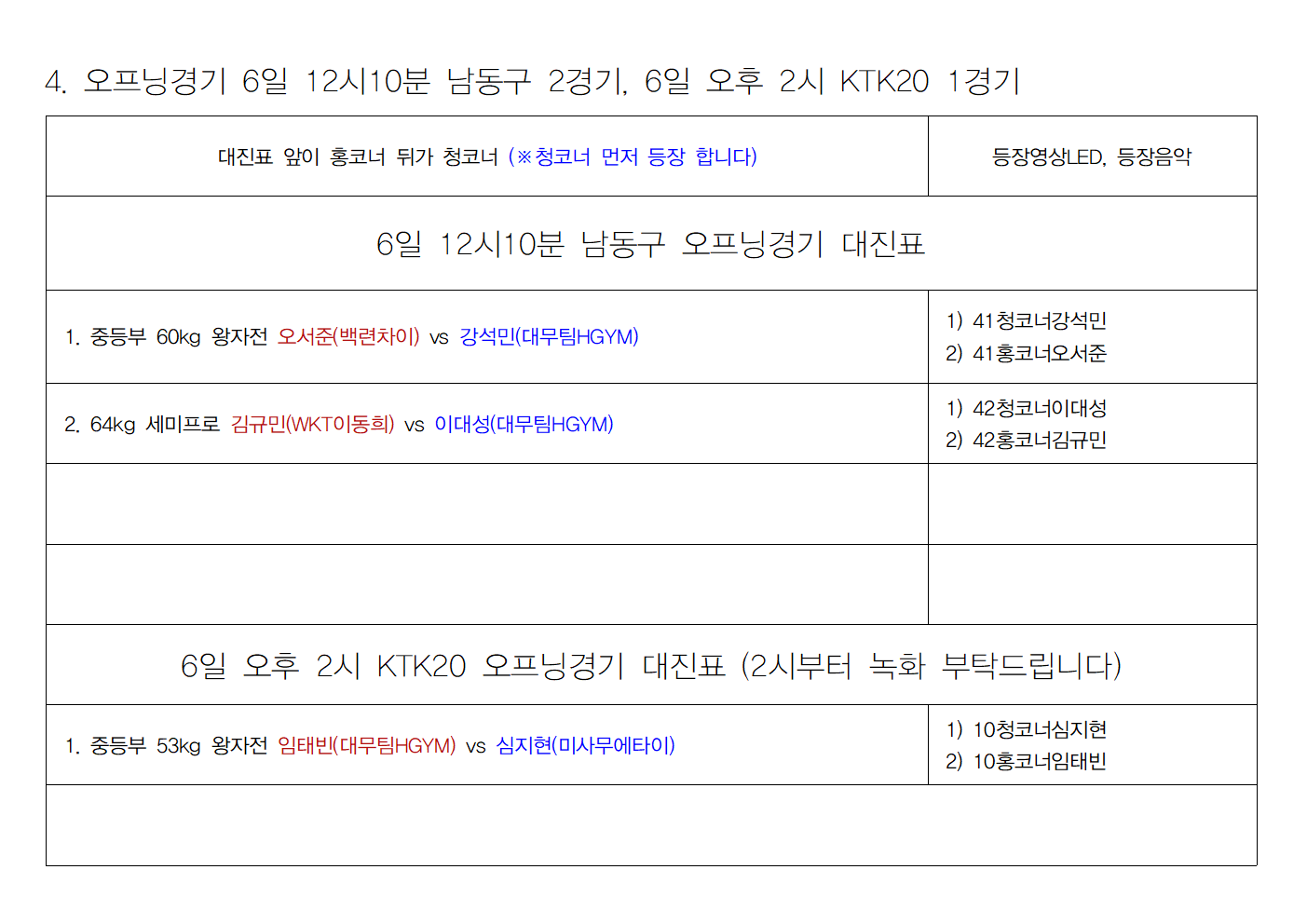 KTK 계체 시간 공지해 드립니다.