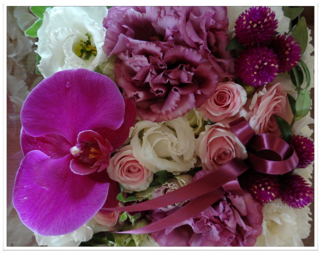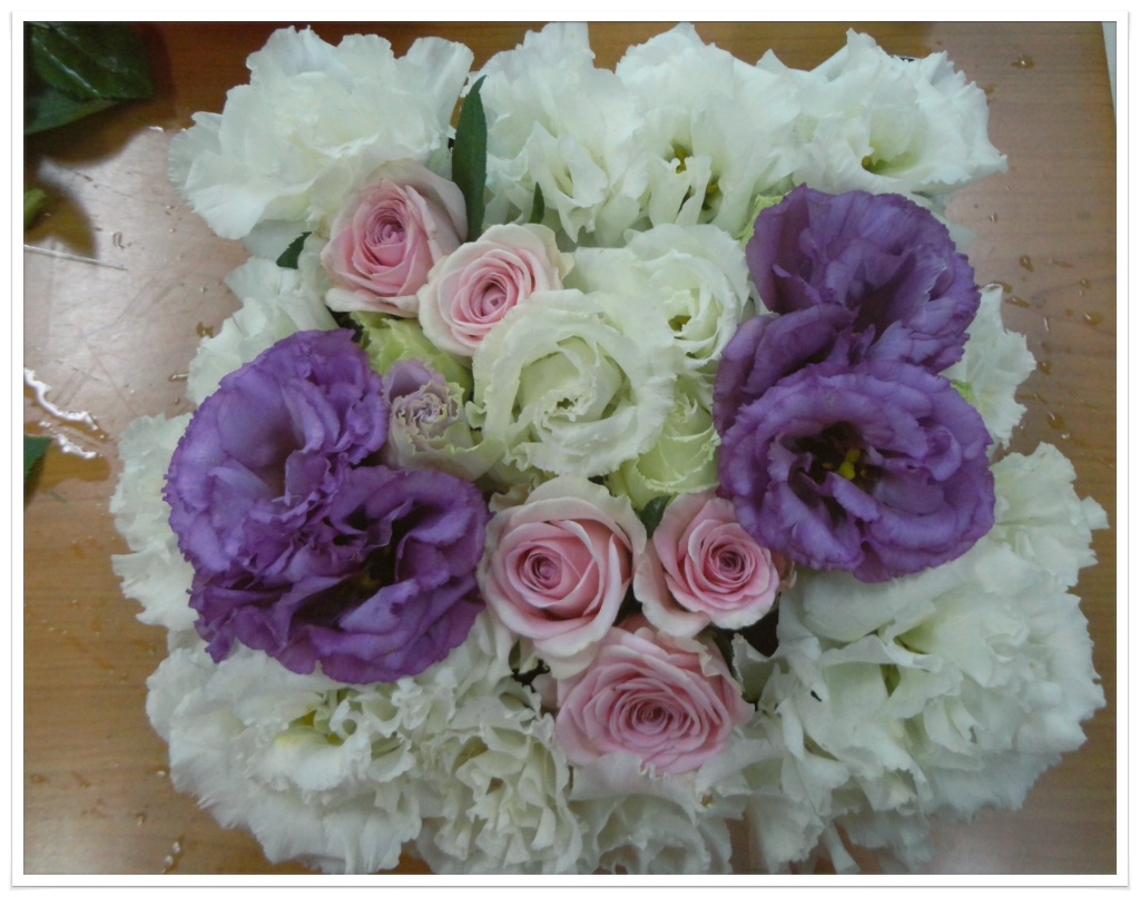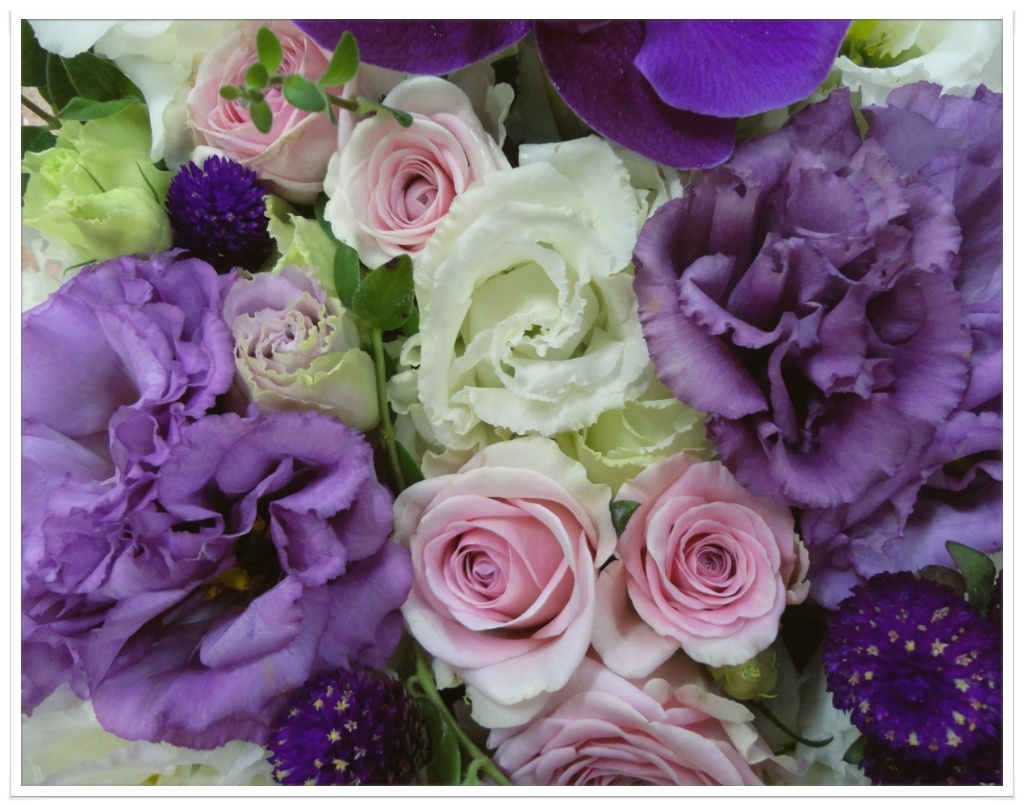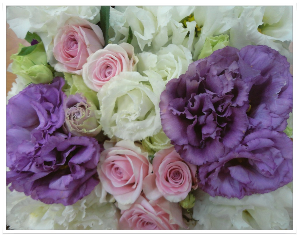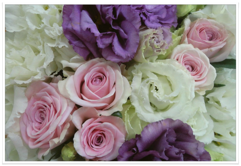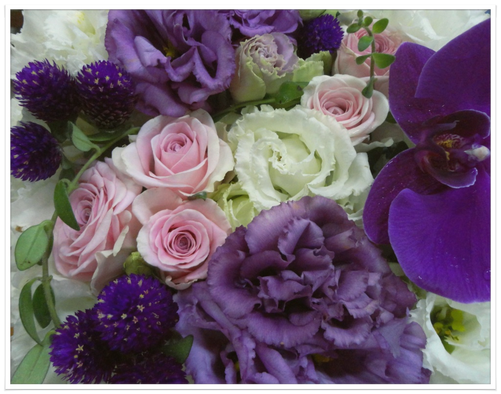흰색 보야쥬, 보라색 보야쥬, 핑크색 장미.