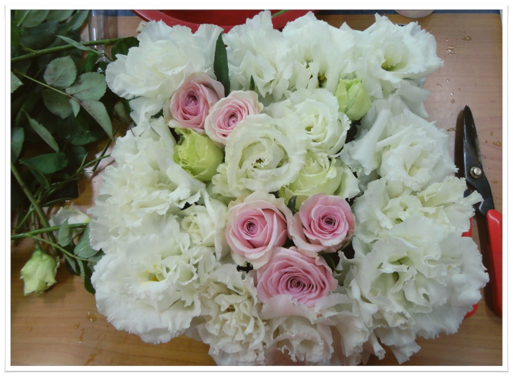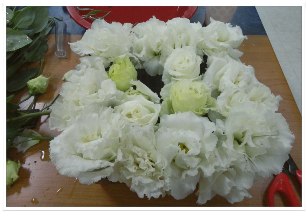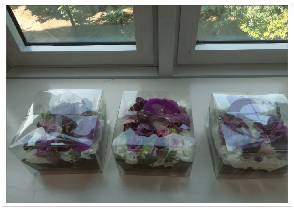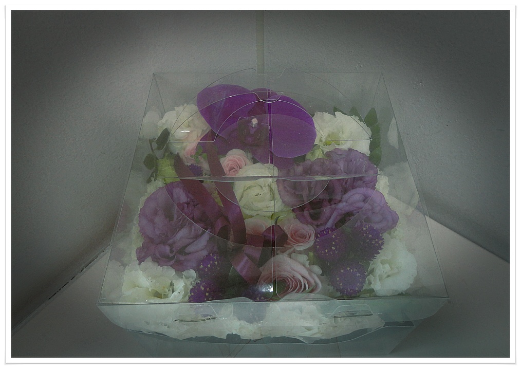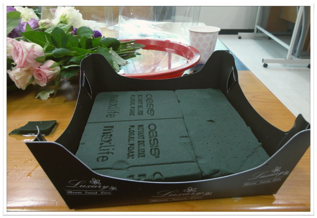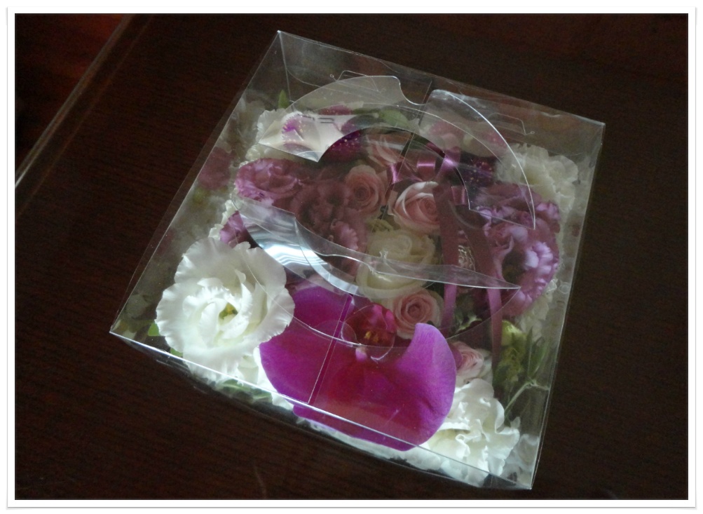 사각 케익박스를 접어 플로랄폼을 넣고