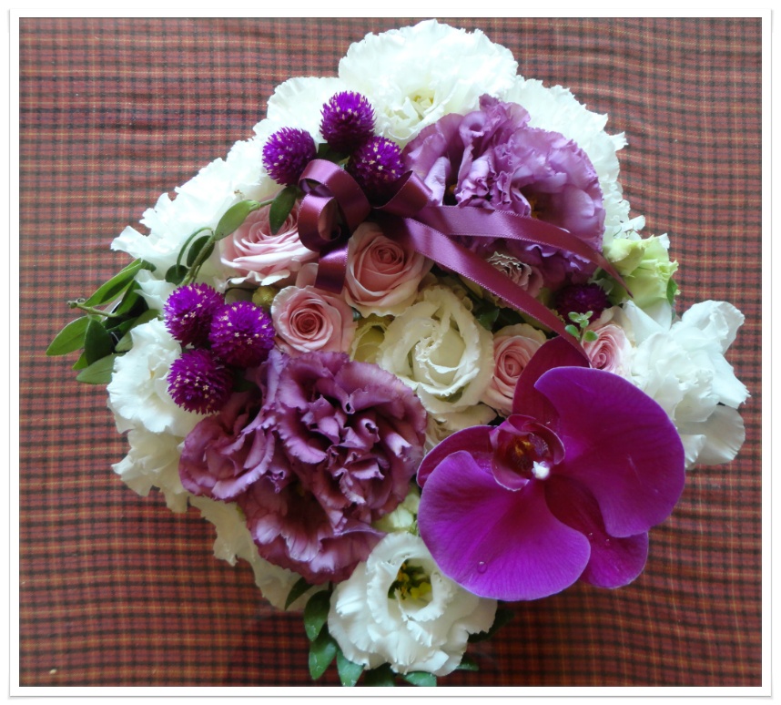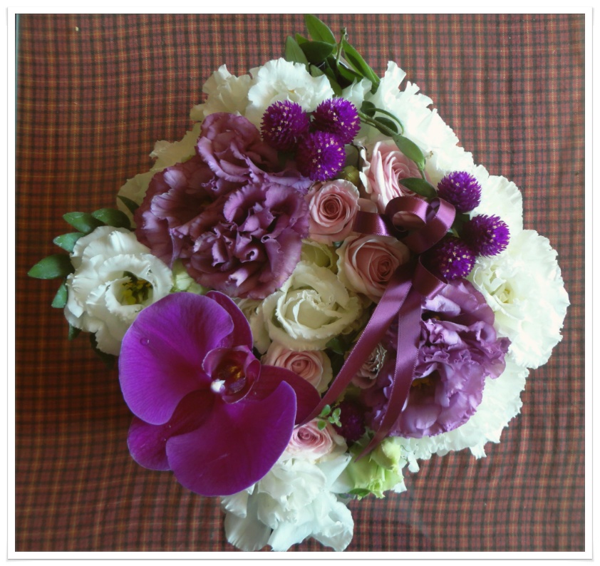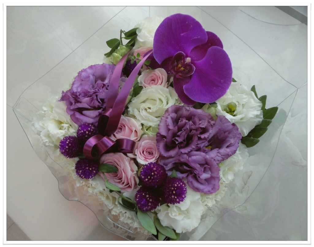 보라색 리본으로 마무리 해주면