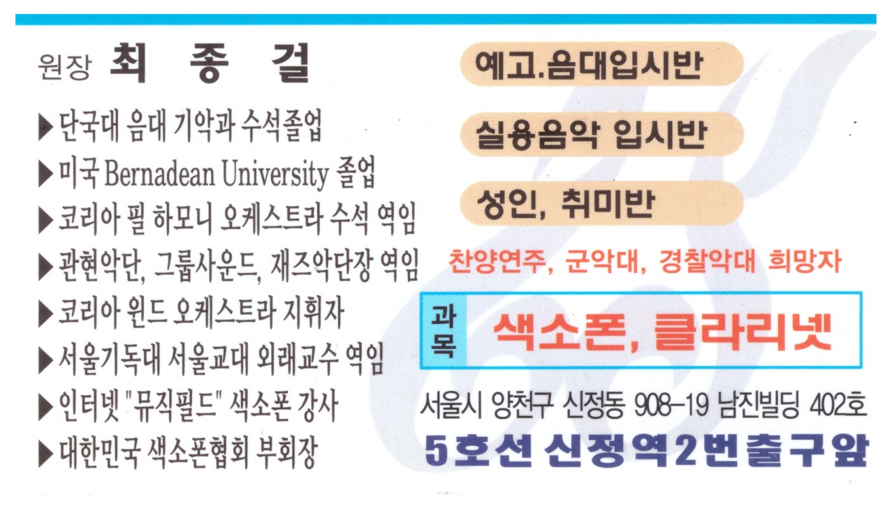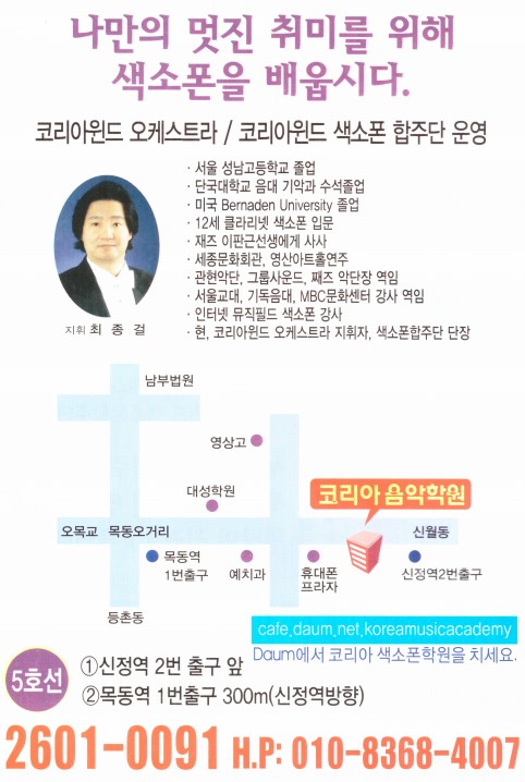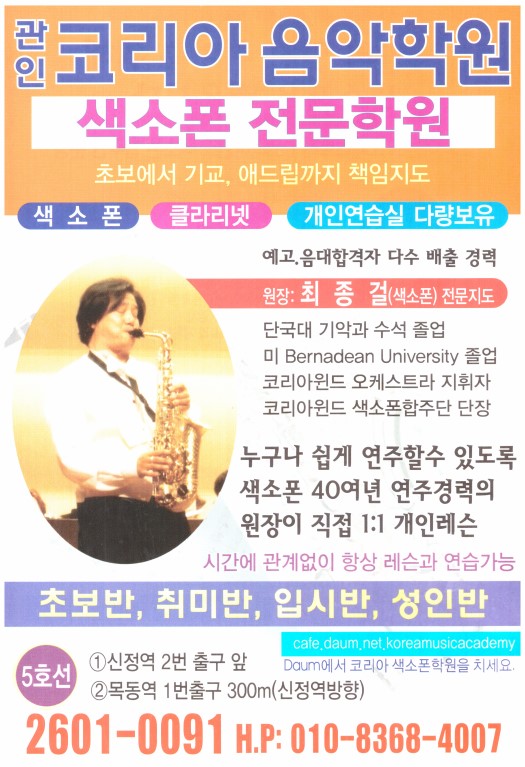 코리아음악학원 , 코리아색소폰학원 문의전화 : [02] 2601-0091