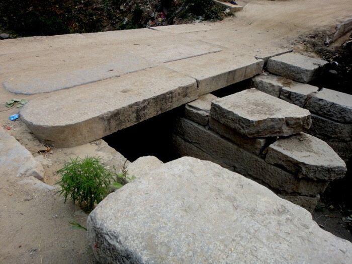 ▼ 엄청난 양의 비석들이 하수구의 뚜껑이나 다리돌로 이용된다.
