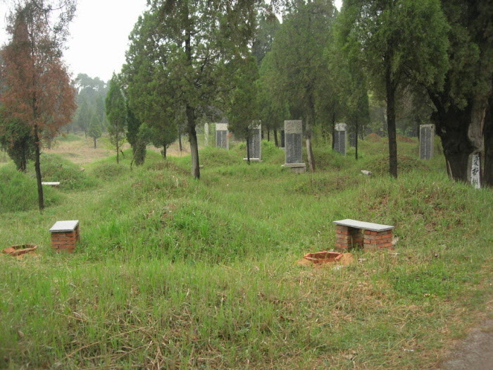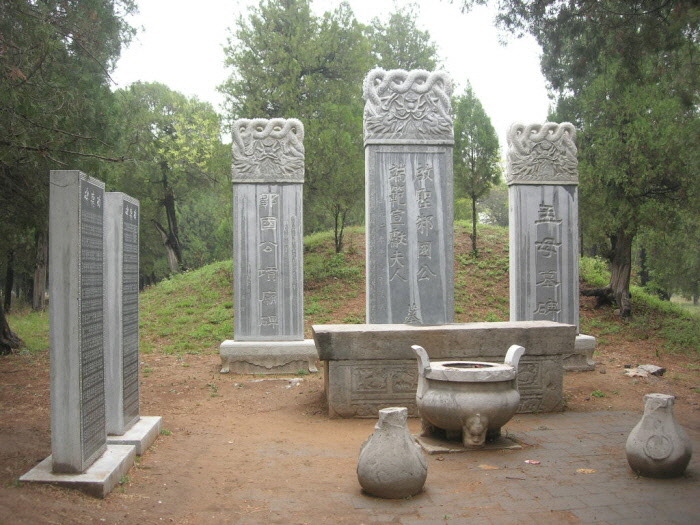 ▼ 맹모의 묘 / 맨 오른쪽의 묘비에 [맹모묘비]라 쓰여있다