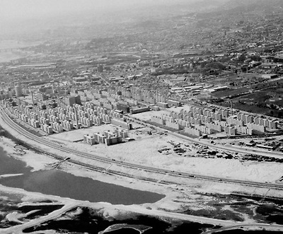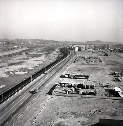 ▲ 청담동 시영주택.그 넘어에 영동교 공사가 진행중 영동교는 73년 11월 8일에 개통하게 되지