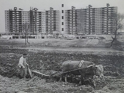 ▲ 거대한 압구정 현대아파트와 농부가 소로 밭갈이 하고 있는 모습이 인상적이네요 1978년. ...