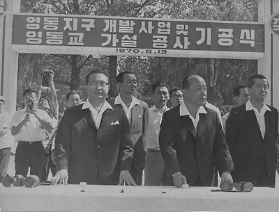 ▲ 영동지구 개발 기공식에 참석해 착공 스위치를 누르는 정일권 국무총리와 양택식 서울시장 1970.8.13 ...